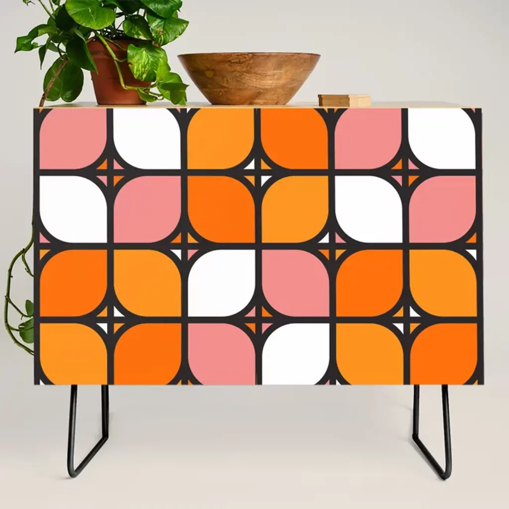 Mid Century Modern Orange Square Credenza