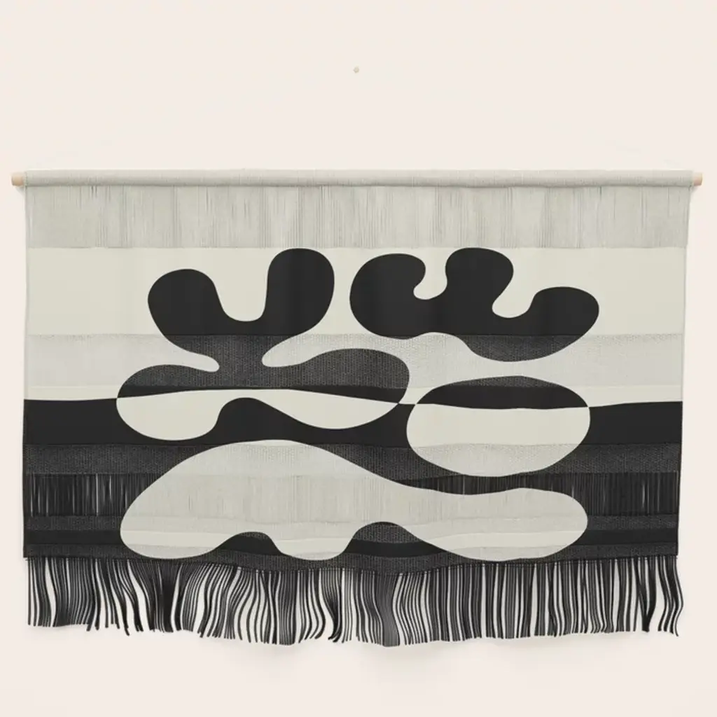 Mid Century Modern Organic Abstraction 235 Black And Ivory White Wall Hanging