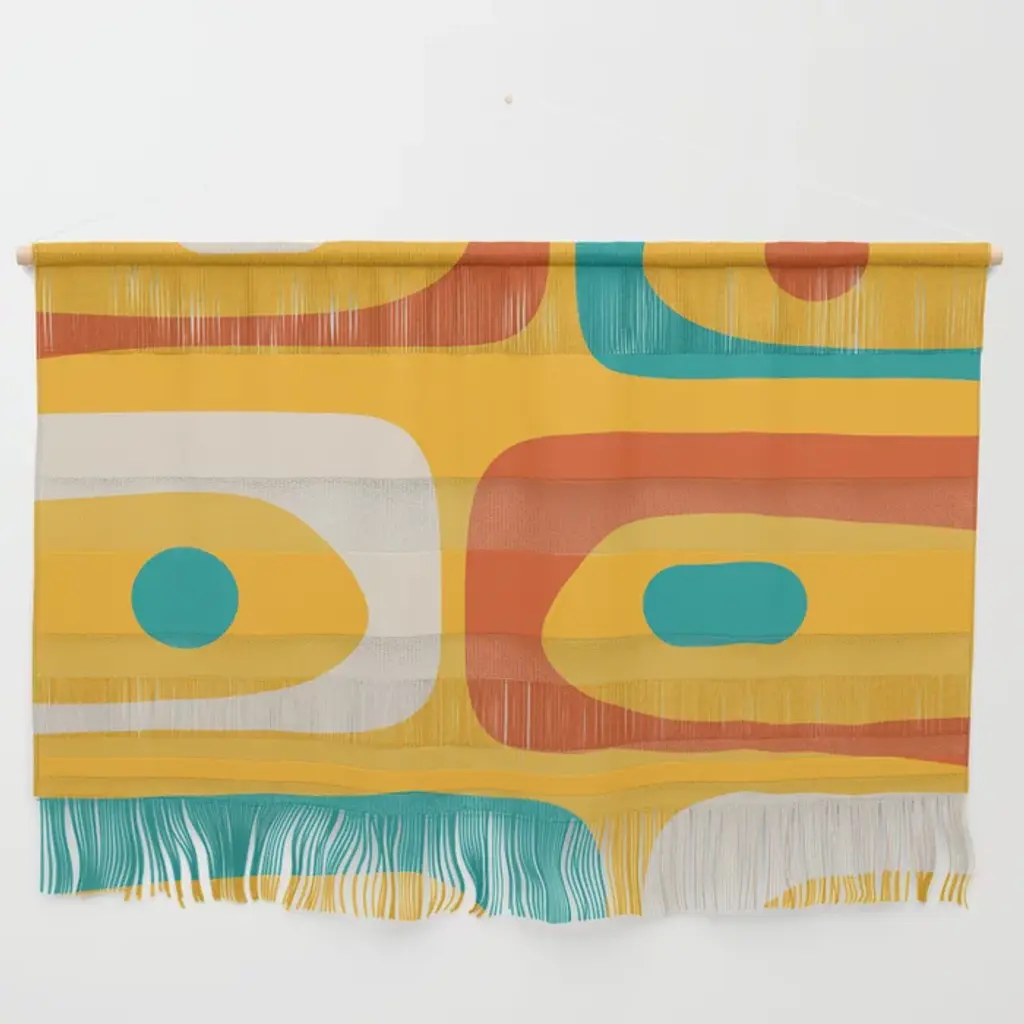 Mid Century Modern Piquet Abstract Minimalist Pattern Orange Yellow Teal Wall Hanging