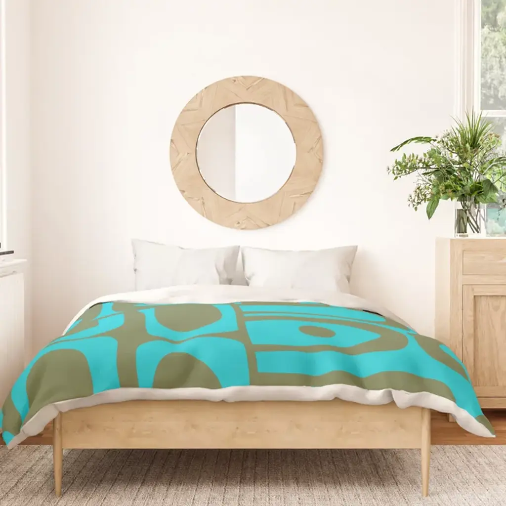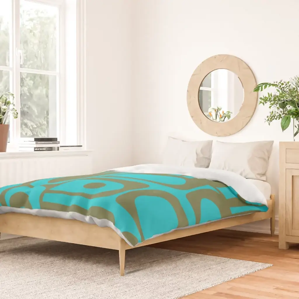 Mid Century Modern Piquet Geometric Mod Olive Green And Turquoise Multi Pattern Duvet Cover