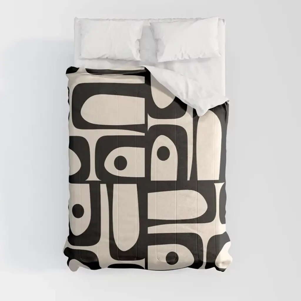 Mid Century Modern Piquet Multi Abstract Retro Geometric Pattern In Black And Cream Pillow Sham