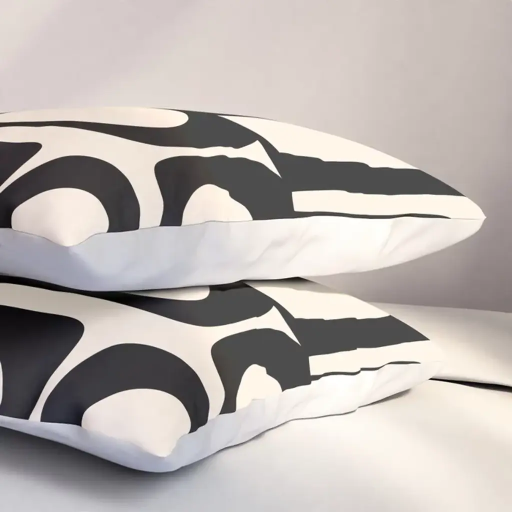 Mid Century Modern Piquet Multi Abstract Retro Geometric Pattern In Black And Cream Pillow Sham