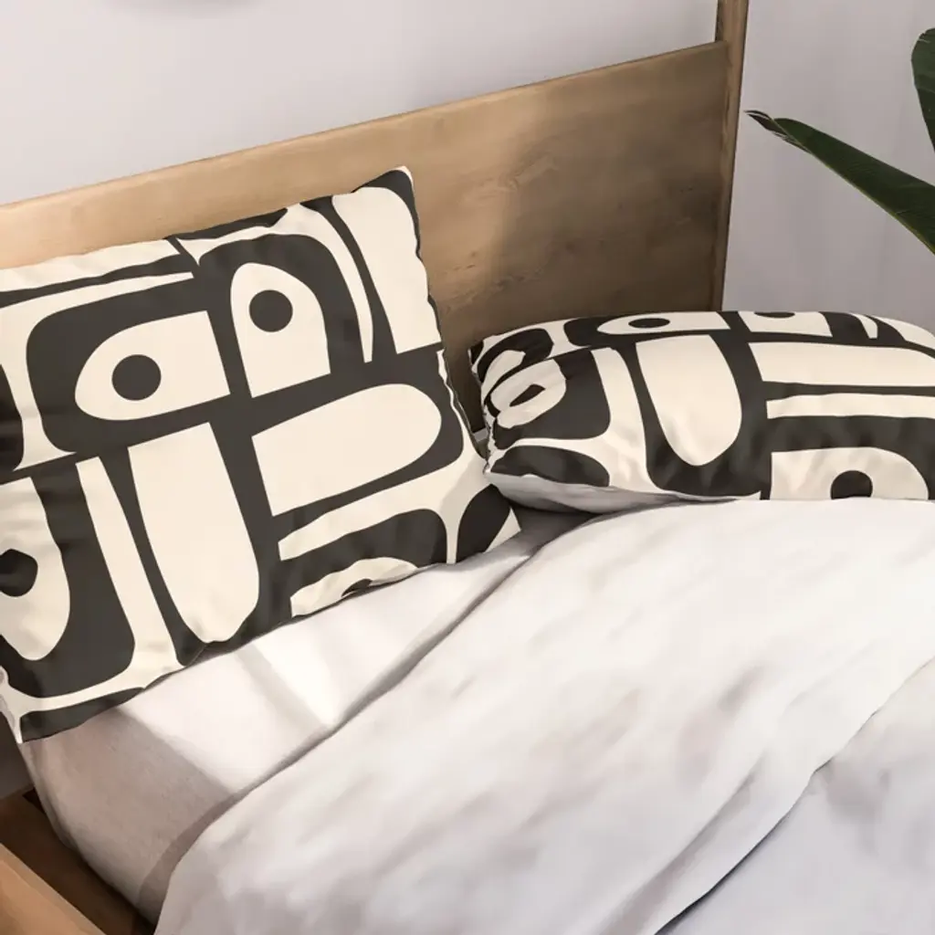 Mid Century Modern Piquet Multi Abstract Retro Geometric Pattern In Black And Cream Pillow Sham
