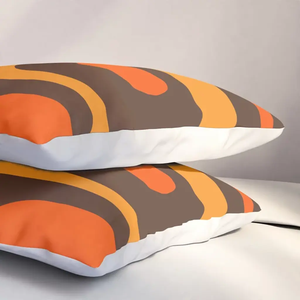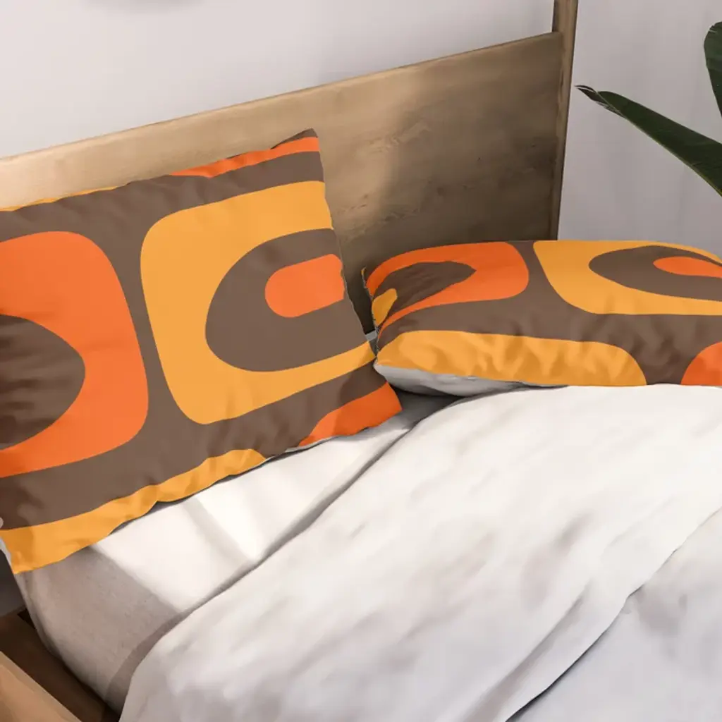 Mid-Century Modern Piquet Retro Minimalist Abstract In 70s Brown And Orange Pillow Sham
