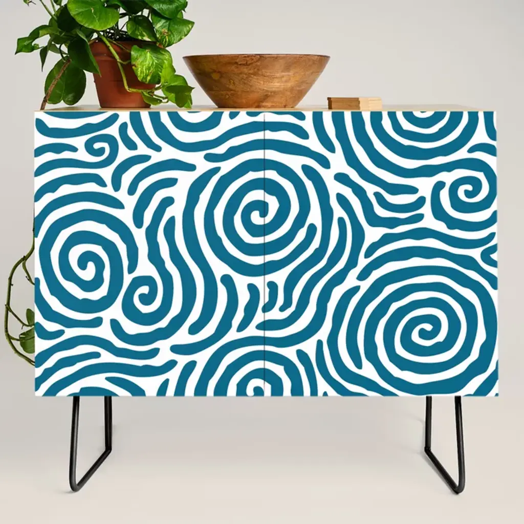 Mid Century Modern Rising Bubbles Pattern Blue 2 Credenza