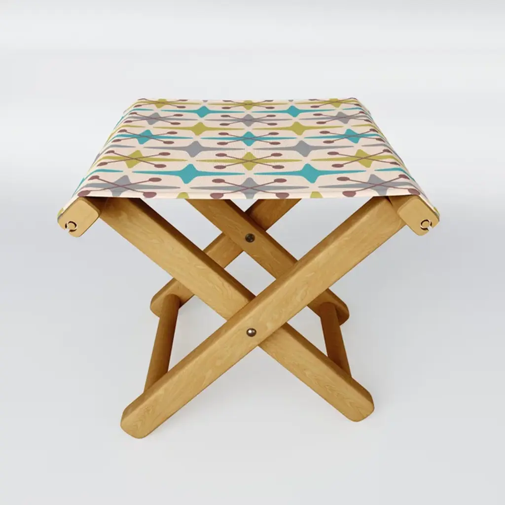 Mid Century Modern Scandinavian Abstract Star Pattern 441 Gray Brown Turquoise Olive Green Folding Stool