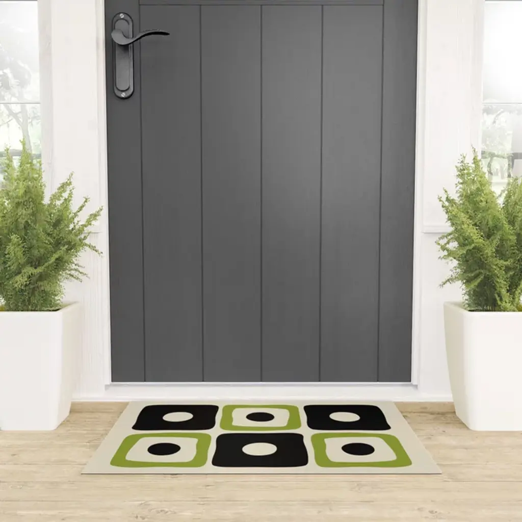 Mid Century Modern Scandinavian Pattern 592 Black And Chartreuse Welcome Mat