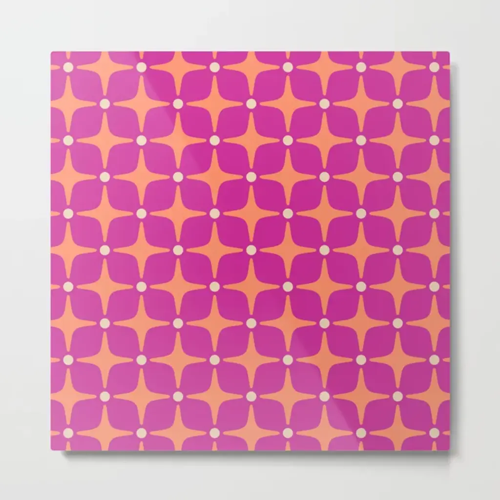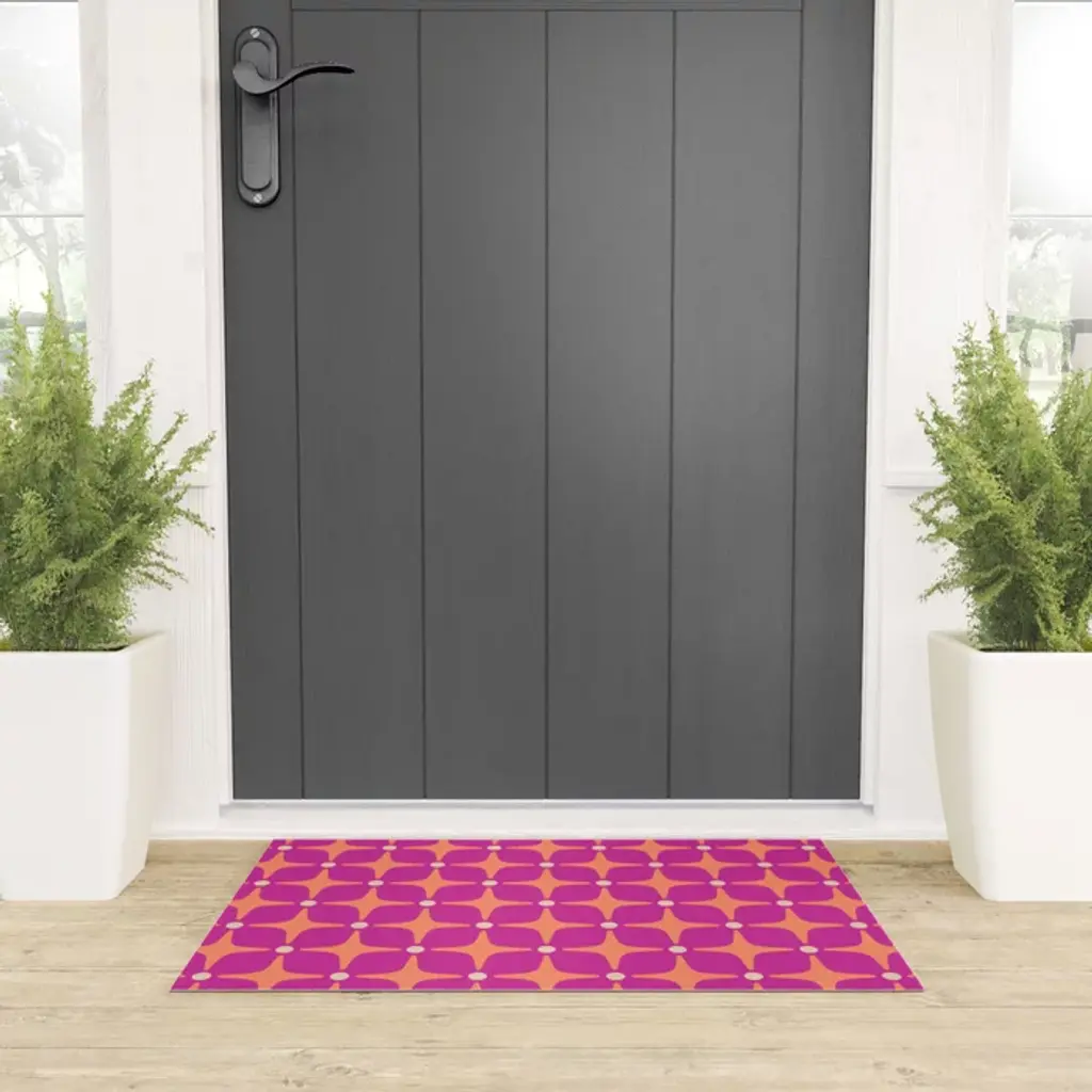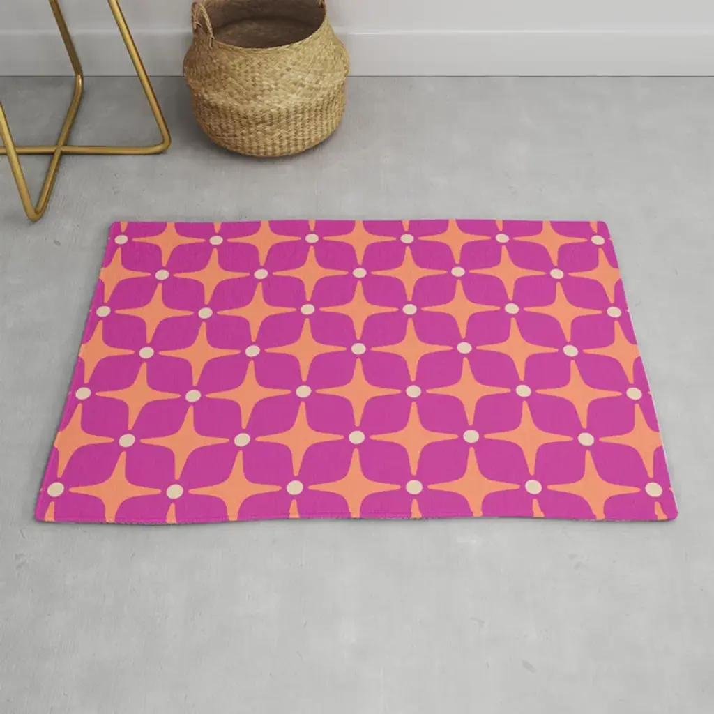 Mid Century Modern Star Pattern 143 Magenta And Orange Welcome Mat