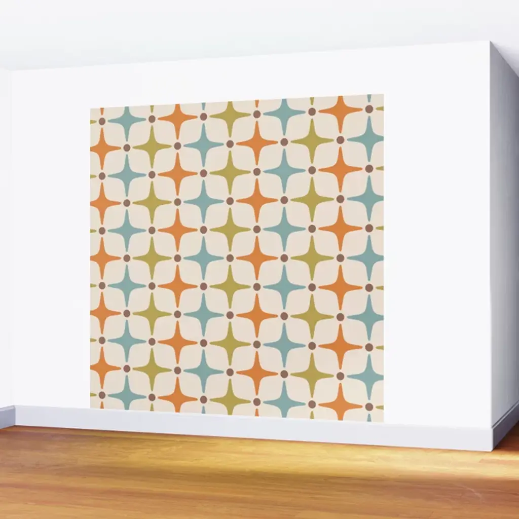 Mid Century Modern Star Pattern 817 Orange Brown Blue And Olive Green Wall Mural