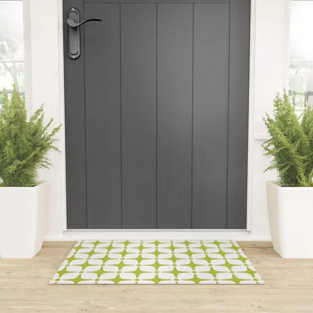 Mid Century Modern Star Pattern Chartreuse Green Welcome Mat