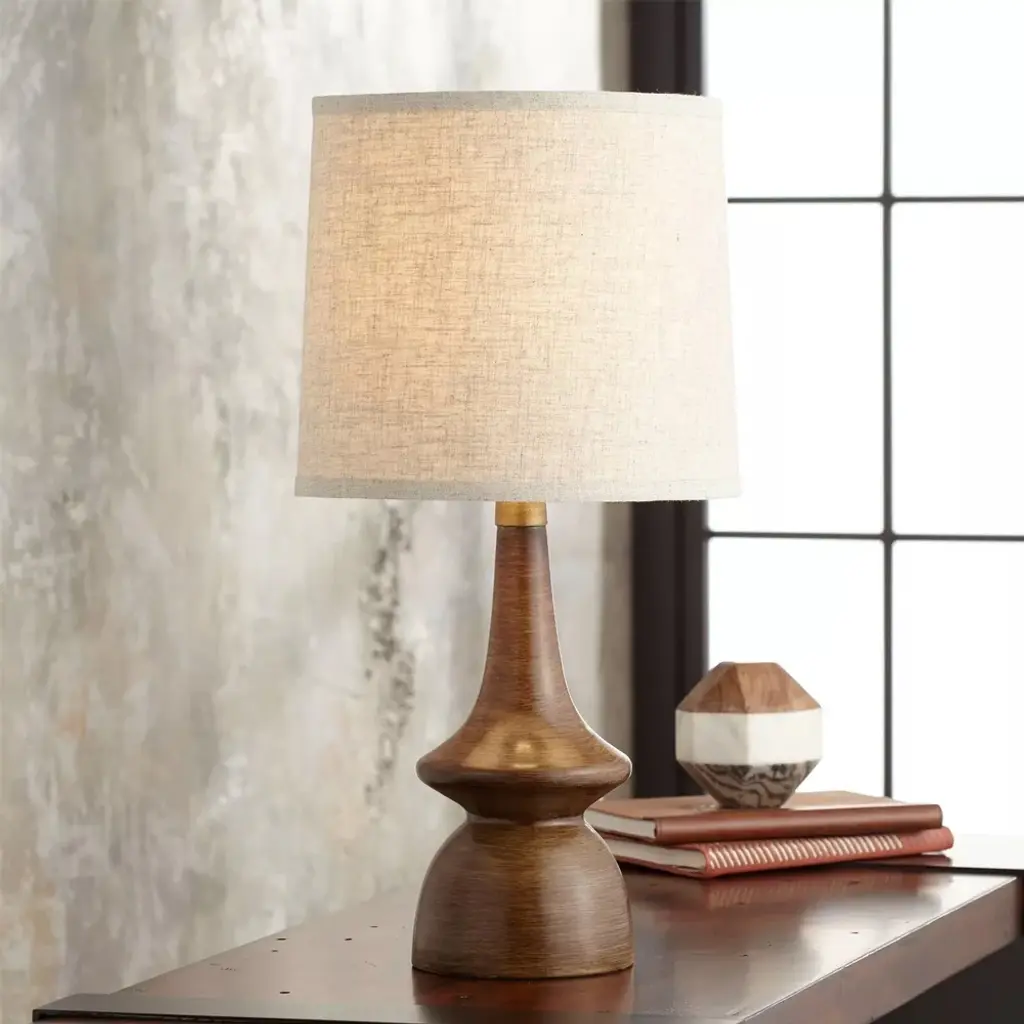 Mid Century Modern Table Lamp Brown Linen Shade - 12" X 24" - 12" X 24" - Brown