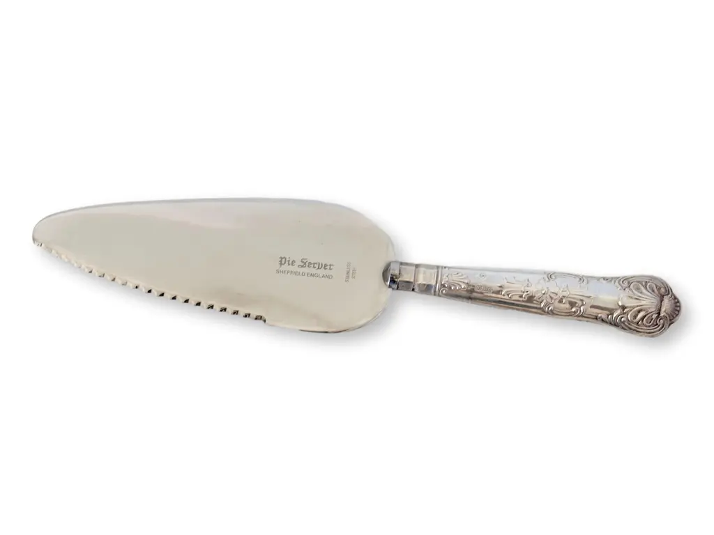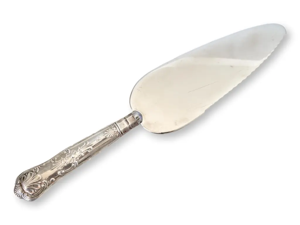Crafted from the finest sterling silver, the handle boasts the renowned English sterling hallmarks, a testament to its genuine quality and origin. The blade, meanwhile, proudly carries the maker's mark, hinting at the craftsmanship and legacy behind this timeless piece. Whether you're serving a delicate pie or a sumptuous cake, this server is not only a tool but a conversation starter. A wonderful addition to any silver collection or a chic touch to contemporary dining.