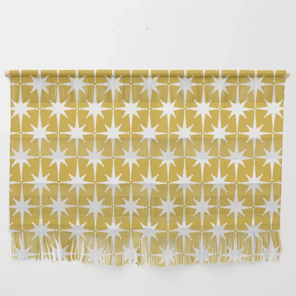 Midcentury Modern Atomic Starburst Pattern Muted Mustard Gold And Cream Wall Hanging