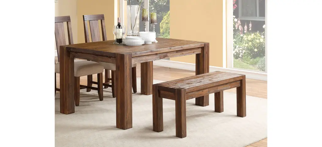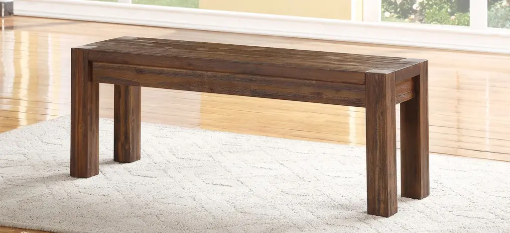 Inspired by the bold, industrial character of an early 20th century work table, the Middlefield dining bench brings warmth, individuality and character to your space. Constructed entirely from solid acacia, a hardwood known for stunning grain patterns and rich contrasting colors, each piece is wire brushed, hand-glazed and hand-finished, creating wood surfaces that radiate texture and depth of color. With features such as mortise and tenon corners, it mingles aesthetics with rugged durability, making it an easy centerpiece for anyone designing a new dining room. For the minimalist, bold lines call only for complementary colors and dinnerware of your choosing. For the more creative, the multi-tonal character of hand-hewn acacia lumber and woven fiber unlocks a broad spectrum of compatible colors and textures. Natural ambience is easily embellished with modern, traditional, rustic or lodge-styled pieces, patterns, and accessories.