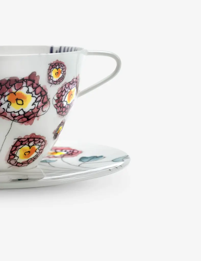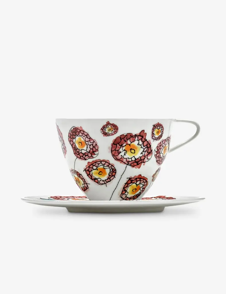 Marni's signature aesthetic finds new expression in this collaboration with Serax, bringing their bold, colorful, and artfully irreverent style to fine bone china. The floral motifs are applied as decals and glazed to give the delicate pattern a lasting finish. In these drinkware pieces, perfectly imperfect shapes and hand-finished details accentuate a look that invites appreciation of the small touches.