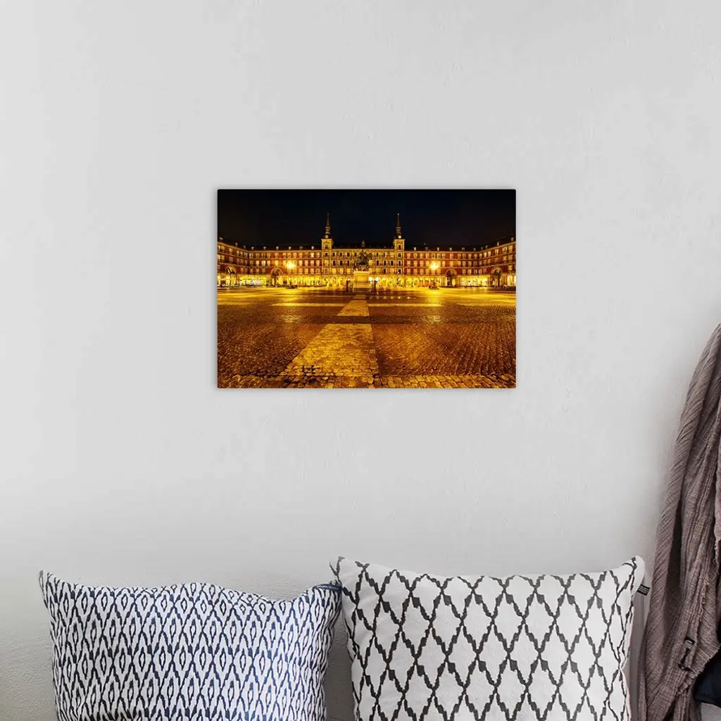 Low Angle View of the Plaza Mayor at Night, Madrid, Spain