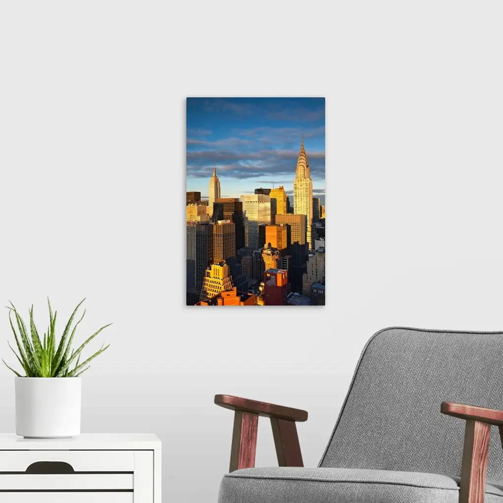 Midtown skyline with Chrysler Building and Empire State Building, Manhattan, New York wall art for home and office decor. Discover canvas art prints, photos, mural, big canvas art and framed wall art in GreatBigCanvas.com's varied collections.