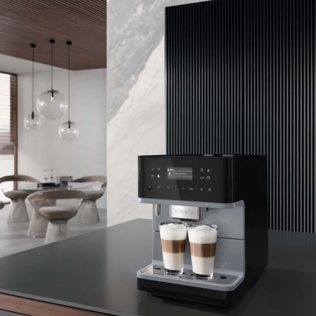Install an entire cafe on your countertop with the Miele CM6360 coffee machine in obsidian black, which makes so much more than just coffee. Classic single and double drinks are available at the push of the button, but you can also program up to eight custom profiles so every drink is made to your exacting standards. This ultra-quiet unit hardly takes up any counter space, despite the fact that it's a coffee pot, espresso machine, milk frother and teapot all in one. Effortlessly grind and brew one espresso for yourself, two cappuccinos for you and a friend, or eight cups of coffee for a houseful of guests Or use the WiFiConn@ct remote function to have a perfect cup of coffee waiting for you when you get out of bed.Miele was founded in Germany in 1899 with the motto "forever better." Renowned for refined stylish and state-of-the-art engineering, every premium Miele product is a breakthrough in its category demonstrating the highest quality, performance and environmental standards.Need help choosing? View our Miele comparison chart.View all Miele products