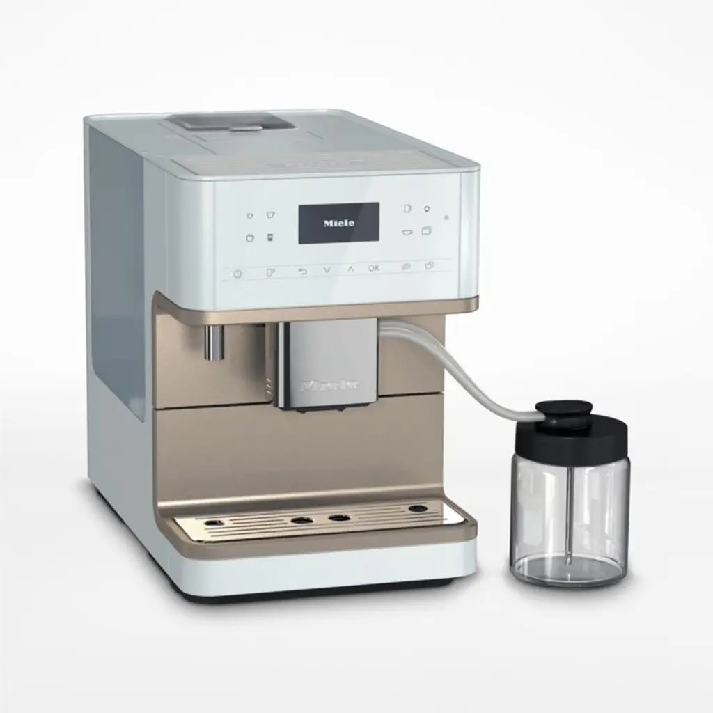 Install an entire cafe on your countertop with the sleek white and champagne Miele CM6360 coffee machine, which makes so much more than just coffee. Classic single and double drinks are available at the push of the button, but you can also program up to eight custom profiles so every drink is made to your exacting standards. This ultra-quiet unit hardly takes up any counter space, despite the fact that it's a coffee pot, espresso machine, milk frother, teapot and cup warmer all in one. Effortlessly grind and brew one espresso for yourself, two cappuccinos for you and a friend, or eight cups of coffee for a houseful of guests. Or use the WiFiConn@ct remote function to have a perfect cup of coffee waiting for you when you get out of bed.Miele was founded in Germany in 1899 with the motto "forever better." Renowned for refined stylish and state-of-the-art engineering, every premium Miele product is a breakthrough in its category demonstrating the highest quality, performance and environmental standards.Need help choosing? View our Miele comparison chart.View all Miele products