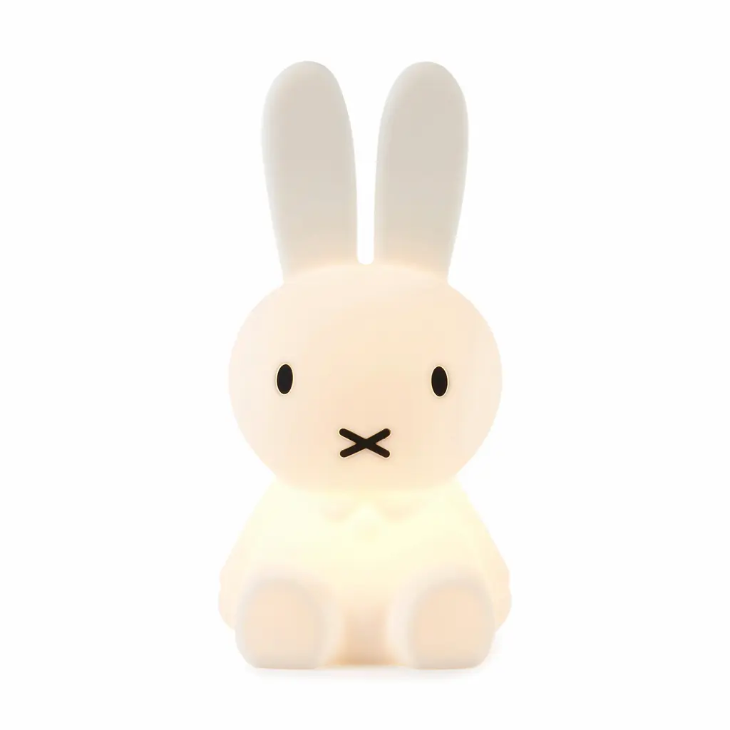 Meet Miffy, the Dutch storybook character turned pop culture icon created by Dick Bruna. The friendly little bunny made her debut in 1955 and has more than 30 books dedicated to her adventures, her very own feature-length film, and a devoted group of fans from all over the world. This safe and sweet light is made of heat-resistant polyethylene and has a dimmable LED light. A wonderful nightlight for a nursery or a fun decorative lamp for older fans. This Miffy Light comes with a User Kit containing an adapter and power cable with touch dimmer button. The are six brightness settings, including a nightmode option.