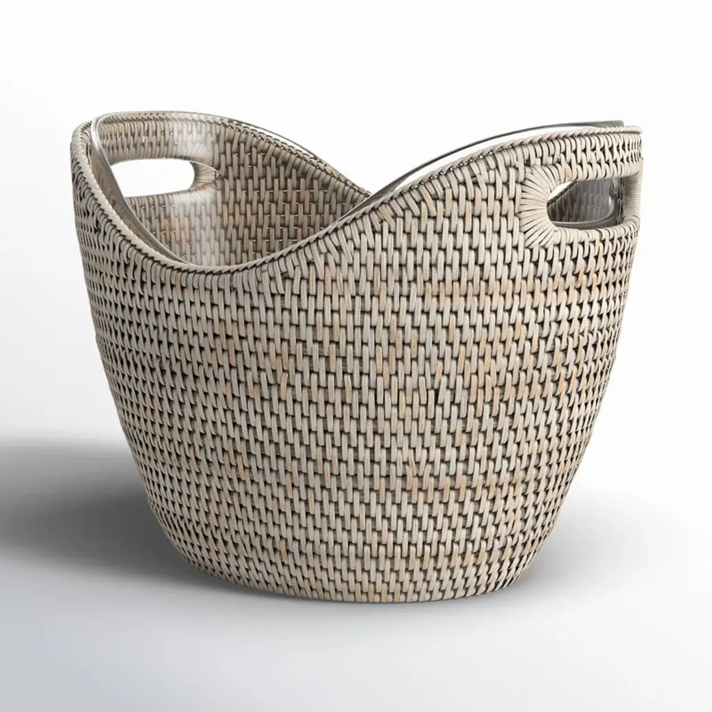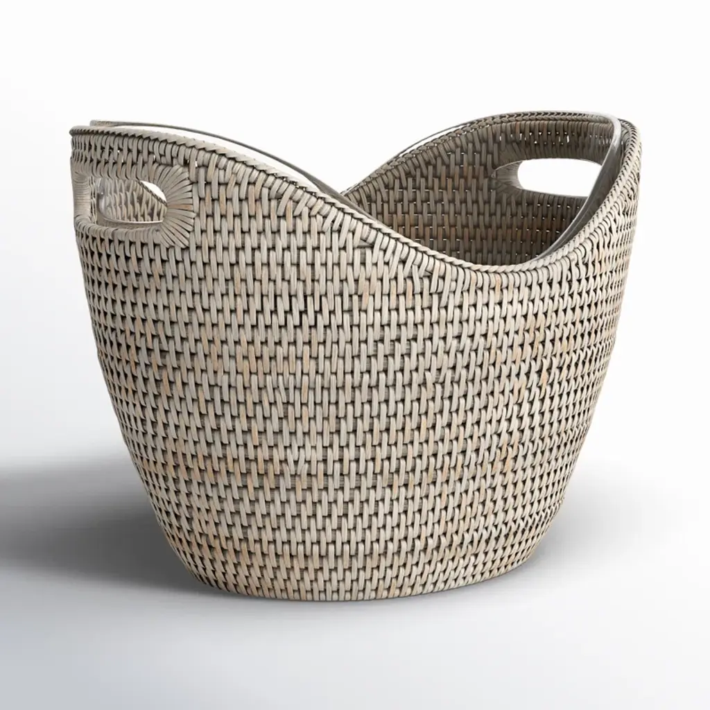 With a signature tight weave and sweeping shape, our Mika rattan beverage tub is great for entertaining. It is finished in a warm, natural gray and has a durable, water-tight plastic insert that keeps moisture away from the rattan. Cheers!
