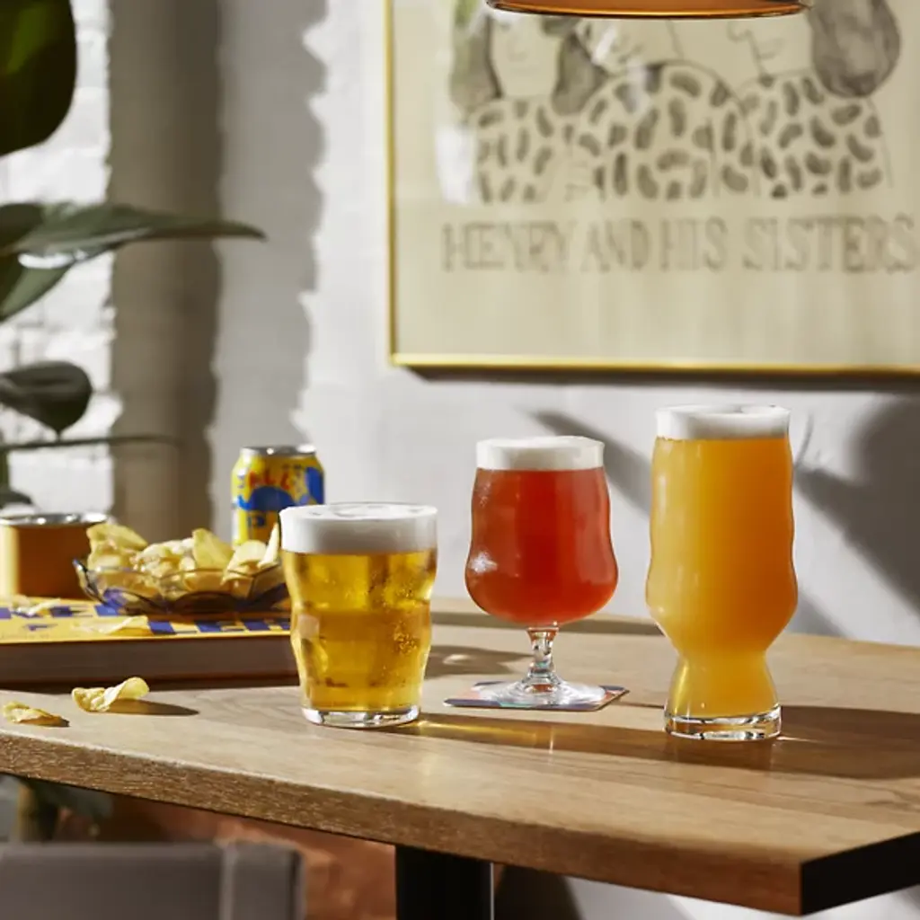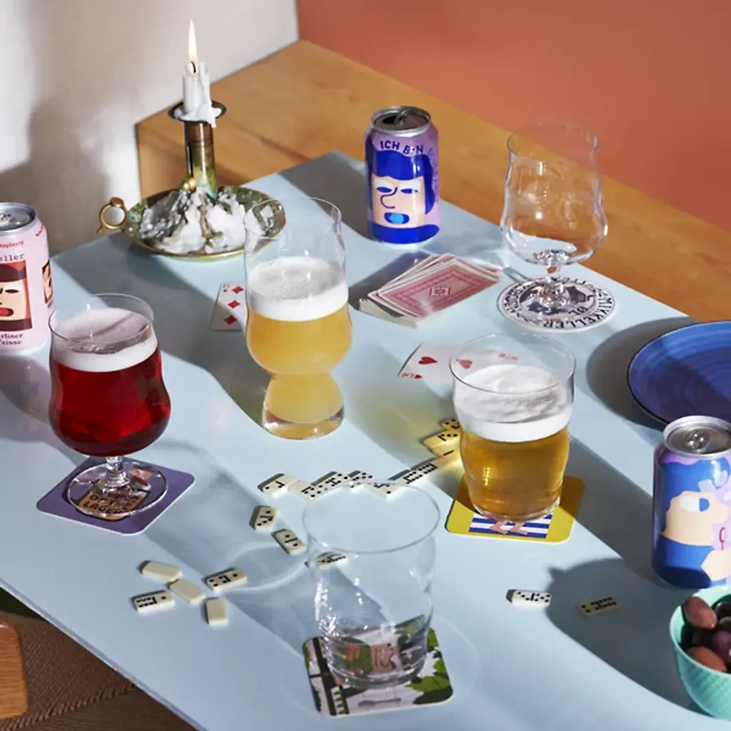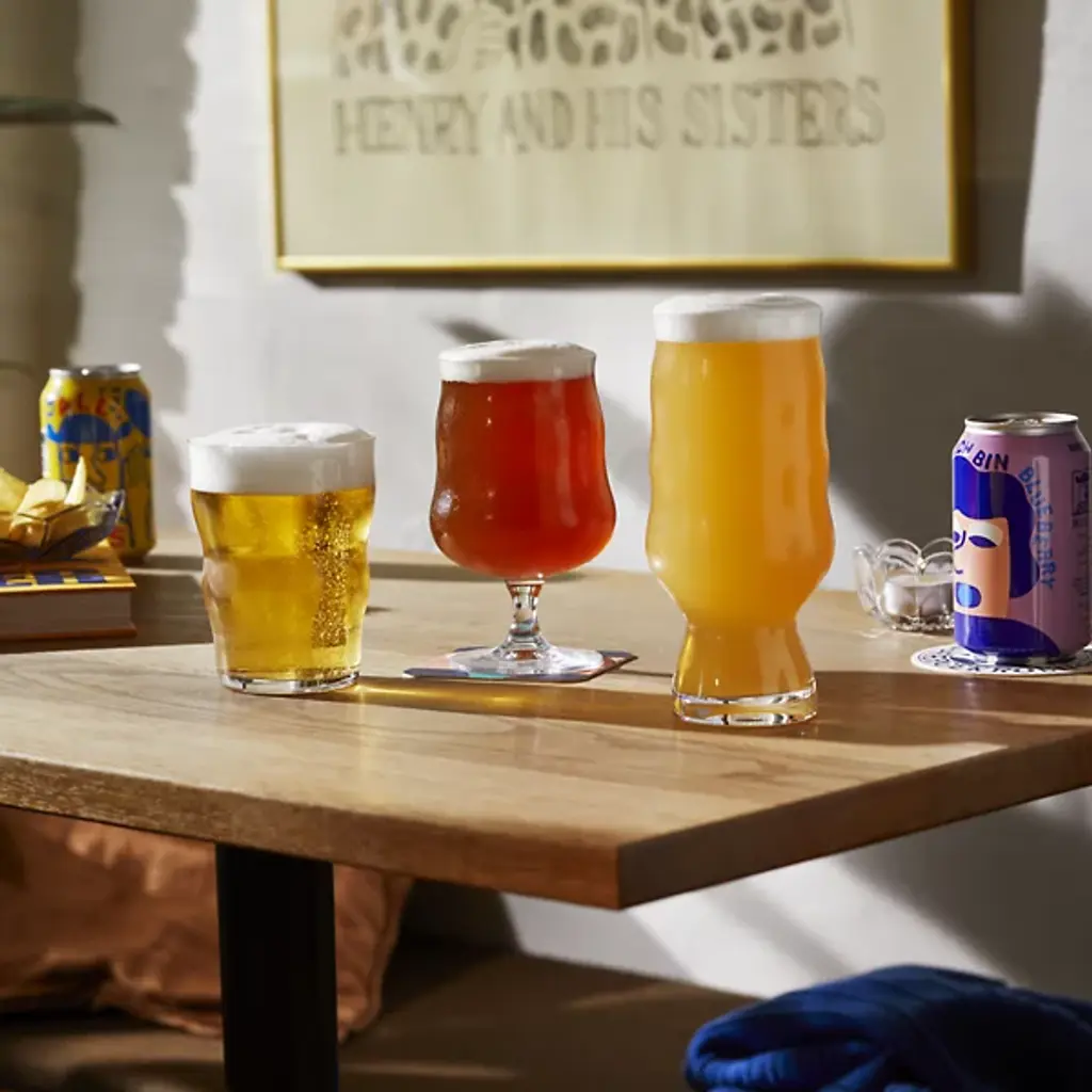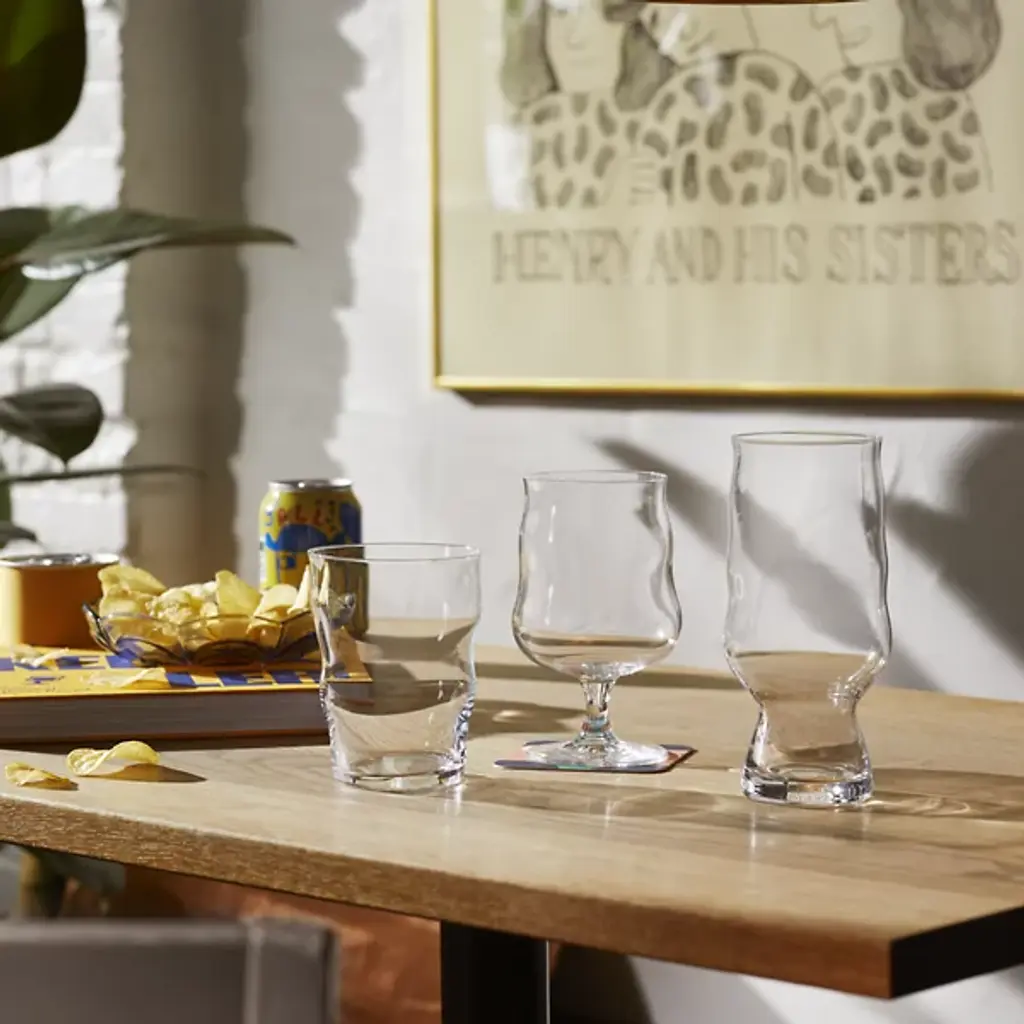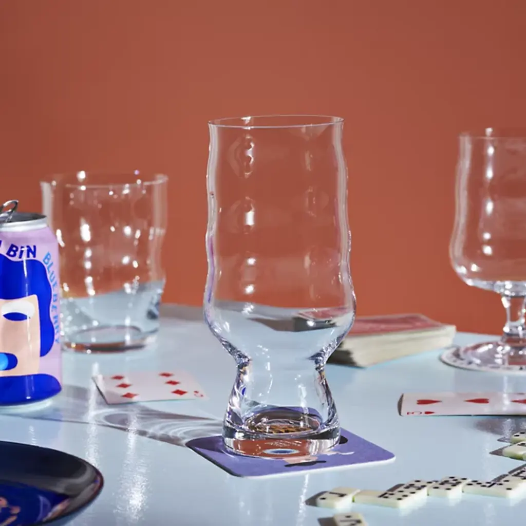 The Mikkeller IPA Glass, Set of 2 from Holmegaard showcases a tall profile that narrows gradually toward the rim, creating an ideal environment for hoppy beer appreciation. A cinched waist near the base encourages movement during pouring and drinking, helping release aromatic compounds. The narrow top diameter traps these released aromatics for enhanced sensory experience. This collaboration between Holmegaard and Mikkeller brewery demonstrates how two Danish craft masters can create specialized glassware that updates beer service into something more thoughtful and deliberate.
