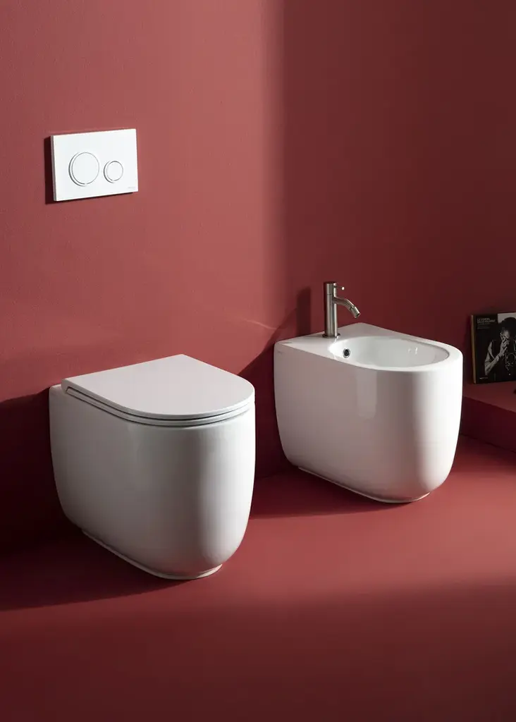 MILADY is a Vitreous China floor WC with rimless technology.A shapely, graceful and elegant dame who is able to be in whatever kind of circumstance, who can interact with any different speaker and who grants an adequate answer to whichever kind of question. Milady perfectly summarize all the requested characteristics for the modern bathroom: well-balanced lines to be combined with every different kind of design but at the same time with a high functionality and cleanliness guarantee, thanks to Olympia’s new RIMLESS system. The full WC range, back to wall, wall hung and close coupled versions provide the Olympia new Rimless system, designed and created for the high flushing performances, which thanks to the studied technology does not undermine the soft and clean lines, for a design that replies to the vanguard of the modernity. The Milady’s washbasins try to reply to all the different needs. The smallest range basin of 30 cm with tap hole is the clear recap for what the market sector is asking for nowadays: saving as much as possible space, especially for urban solutions, whilst promising at the same time design appeal, which the contemporary user cannot do without. The further solutions for the basins pass through the intermediate dimensions for the 50 & 70 cm, until to reach the 90 cm dimension, to create and reply positively to every kind of installation. Milady, a graceful range, ready to respond with elegance and competence to any request.