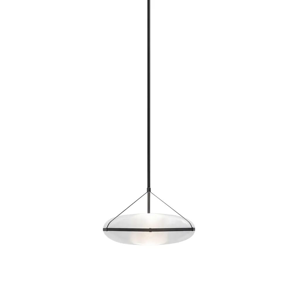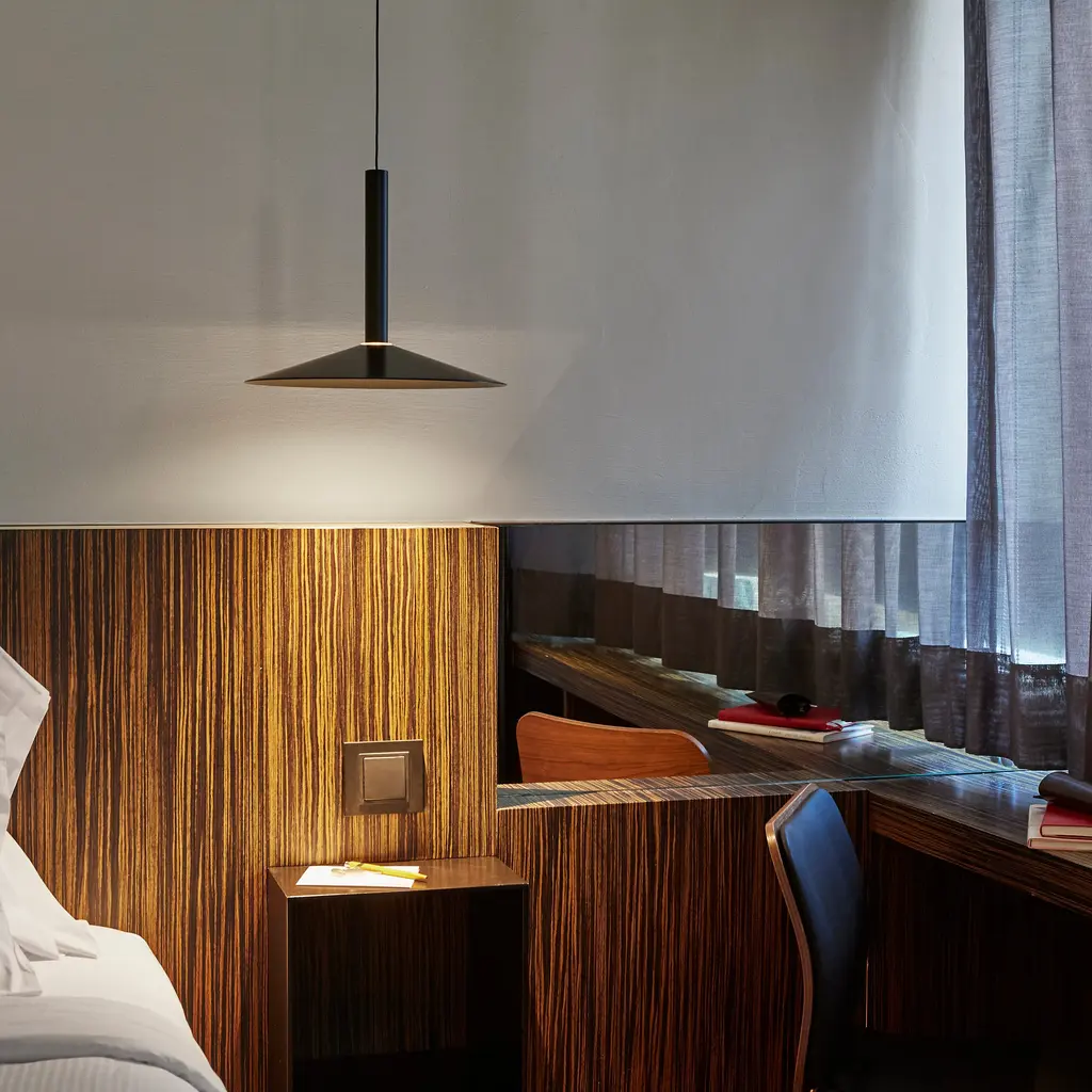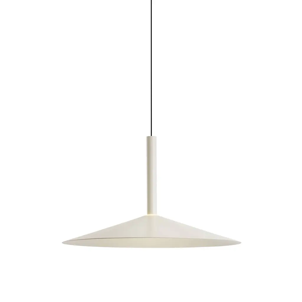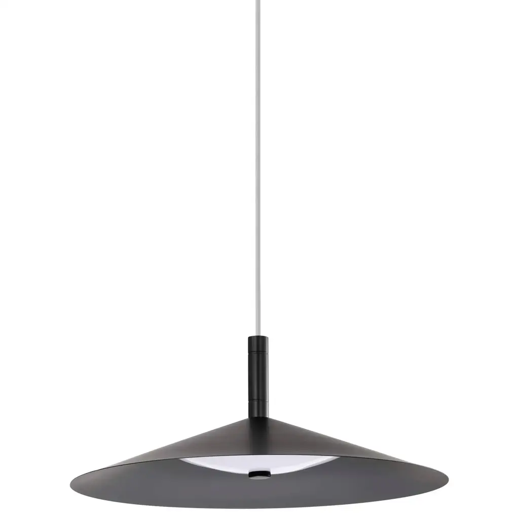 With its slim line and crisp cone shade, Milana hews to the modernist credo "Less is more." Barcelona designer Jaume Ramírez follows in that vein with a simple suspended cylinder and adds the crisply geometric shade, both in sleek lacquered aluminum. Marset's minimalist fixture incorporates a built-in LED to create a overall glow of illumination when reflected from inside the shade as well as a narrow ribbon of light at the top.