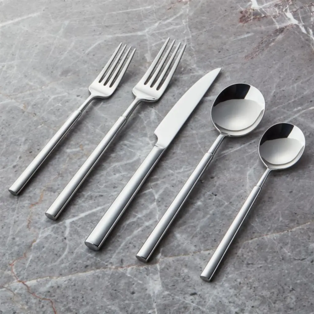 Designed by Nick Holland, Miles matches traditional bowl shapes with delicate oval handles. Made of mirror-polished stainless steel, Miles flatware brings its stylish mix to traditional as well as casual tables.