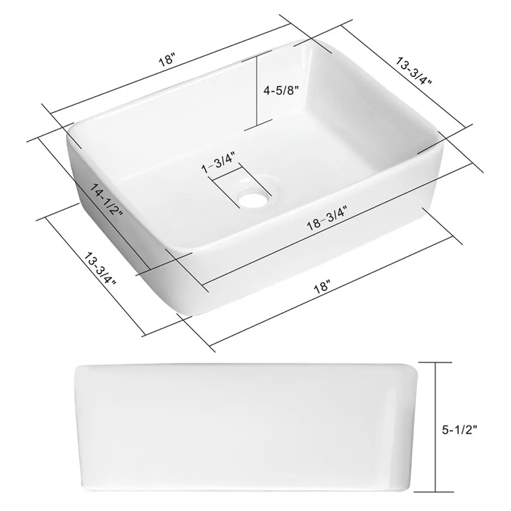 Crafted of impact-resistant, durable materials designed to withstand daily use. Features a stain and scratch-resistant surface. Installation is simple, as bowl sits flat on the counter and features a standard size drain hole which easily accommodates the use of any bathroom sink pop-up drain (not-included). Bowl Size: 18-3/4-in x 14-1/2-in