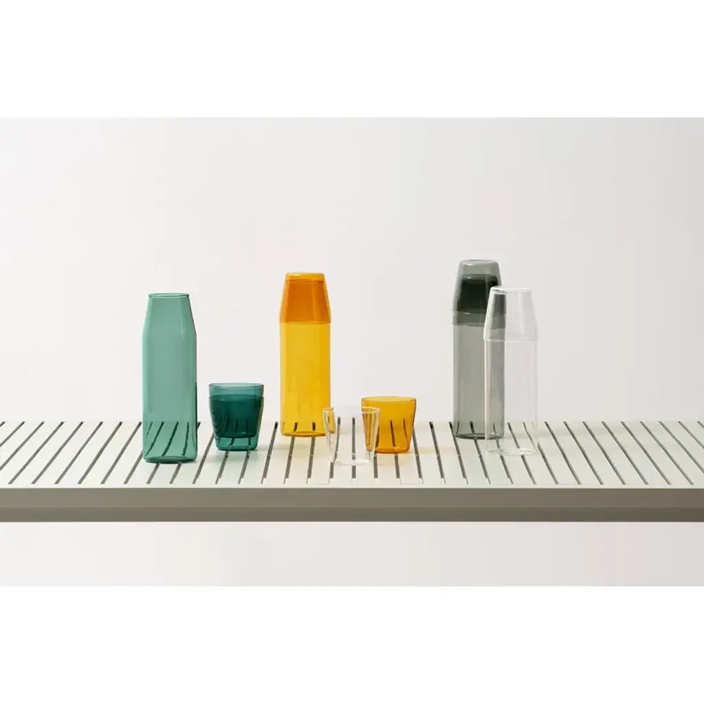Nine Milk drinking glass draws its inspiration – as the name suggests – from traditional milk bottles. Designed by Julien Renault, the drinking glass is made from durable borosilicate glass, making it ideal for both hot and cold beverages. So in addition to milk, you can use the glass to enjoy juices, wines or even afternoon coffee and evening cocoa! The Milk glassware series includes carafes and drinking glasses in various colors, all designed to be conveniently stackable for easy storage. The package contains two glasses.