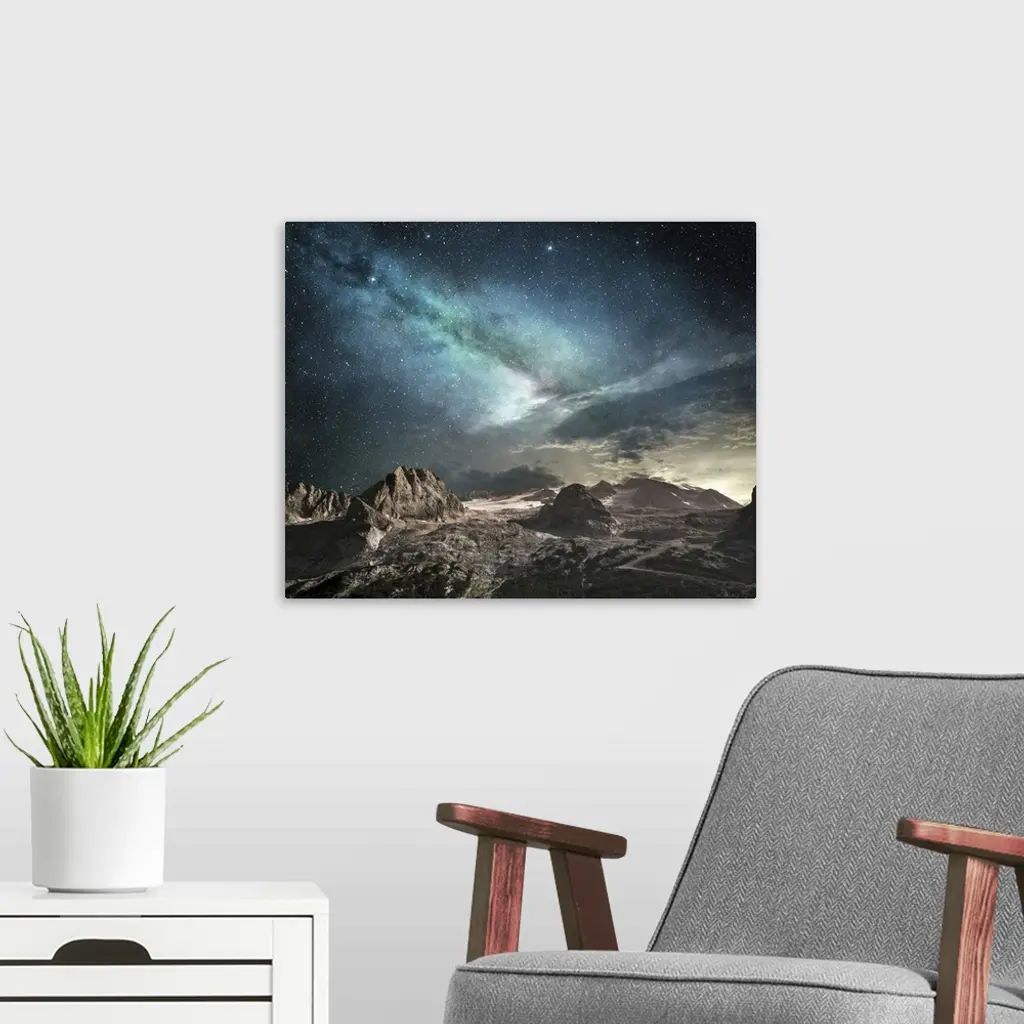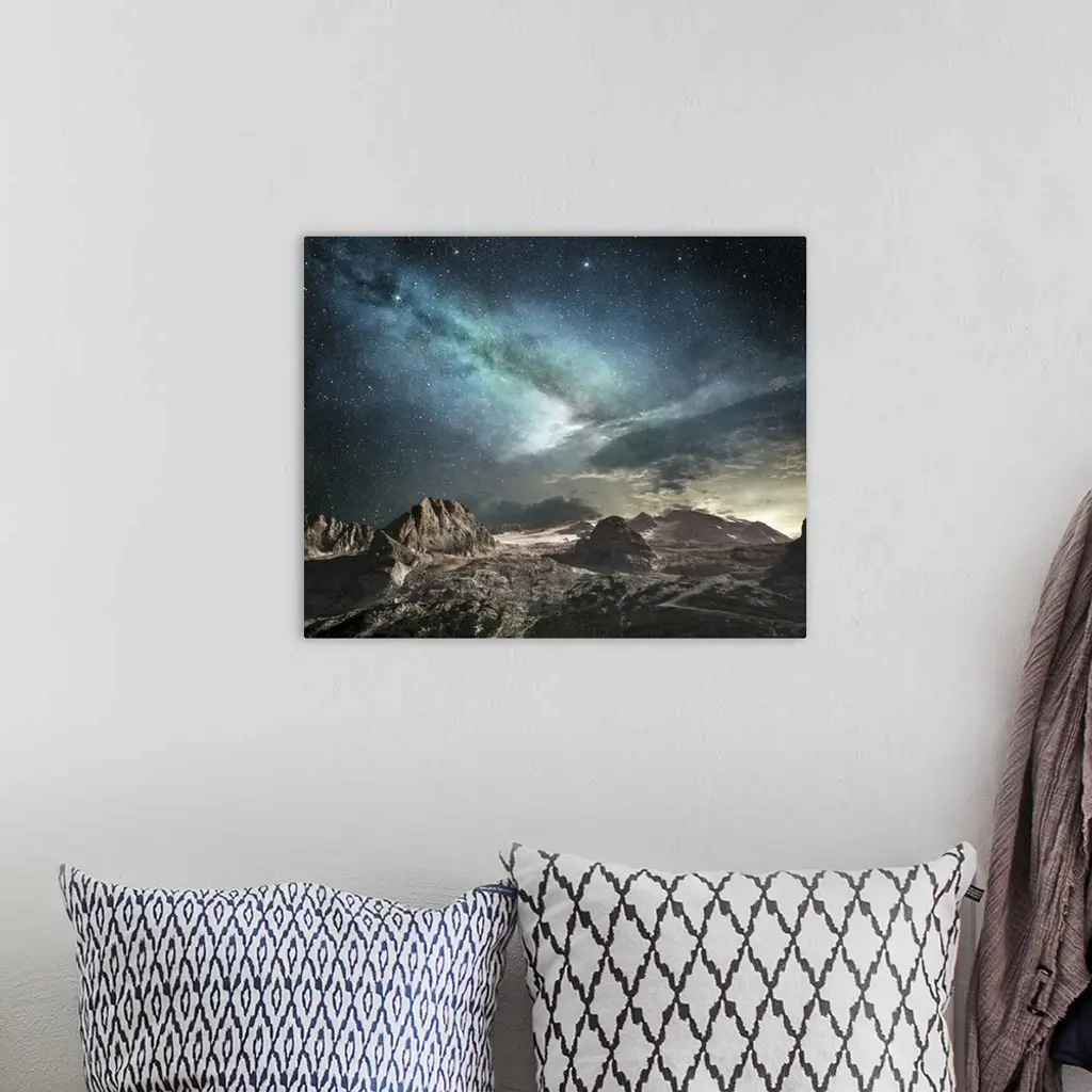 Milky Way At Dawn In A Mountain Landscape wall art for home and office decor. Discover canvas art prints, photos, mural, big canvas art and framed wall art in GreatBigCanvas.com's varied collections.