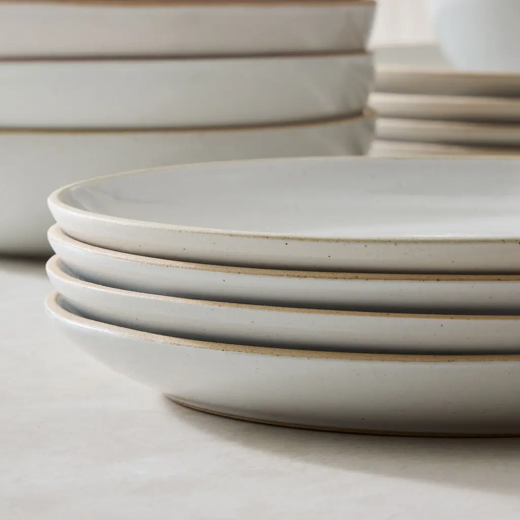 Made of durable ceramic for everyday use. Soft color palette can be used in any setting. Exposed clay rims add extra flair to your kitchen. They're microwave and dishwasher safe.