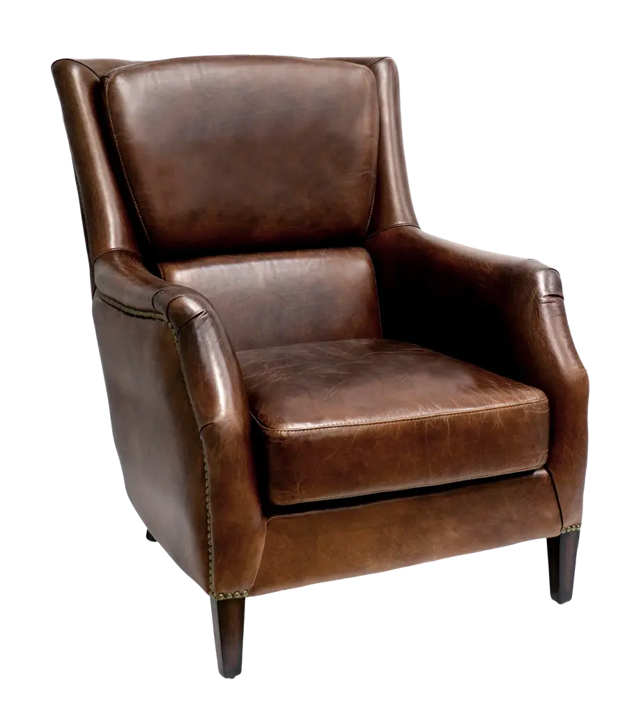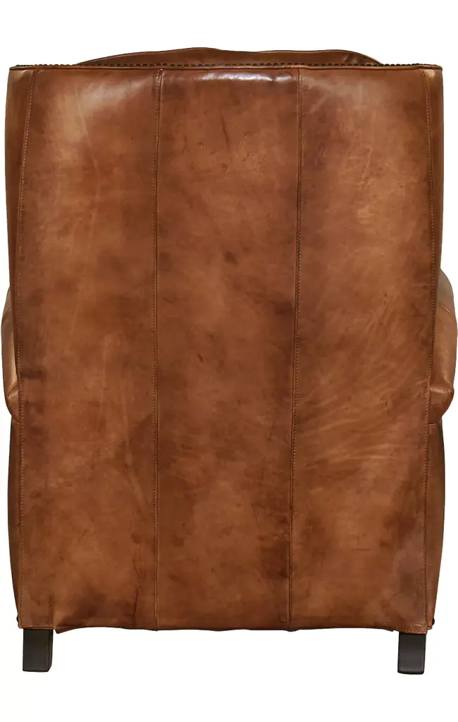 Kick back in grand fashion with our Miller recliner. Upholstered in 100% top-grain, antiqued leather, this luxurious piece features stylish button-tufting, antique brass nailhead trim and turned feet in a warm, mocha brown finish. Crafted with high-quality cushioning and no-sag springs, the Miller will be a staple in your home for years to come.