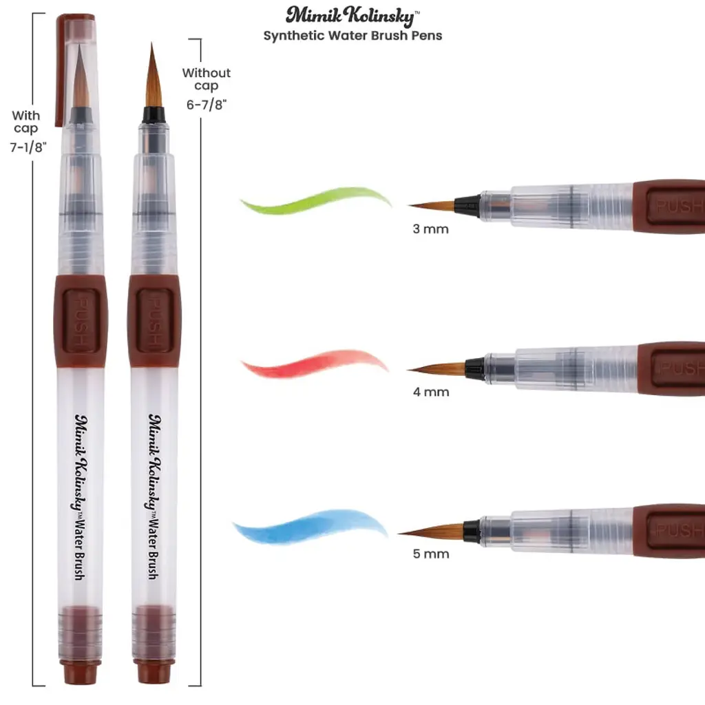 Mimik Kolinsky Synthetic Water Brush, 3 Pack Rounds, 3, 4, 5Mm - Handmade In Germany, Watercolor Brushes With Highly Absorbent Bristles, See-through