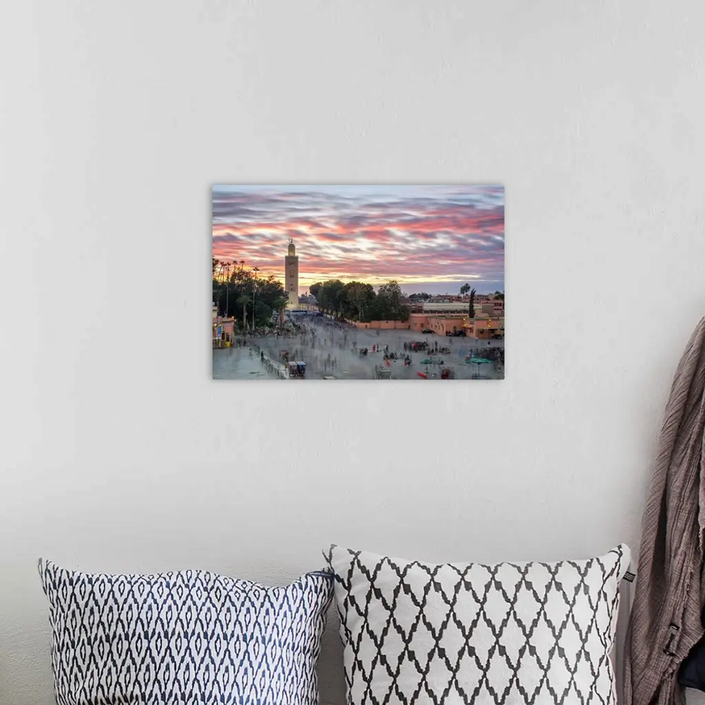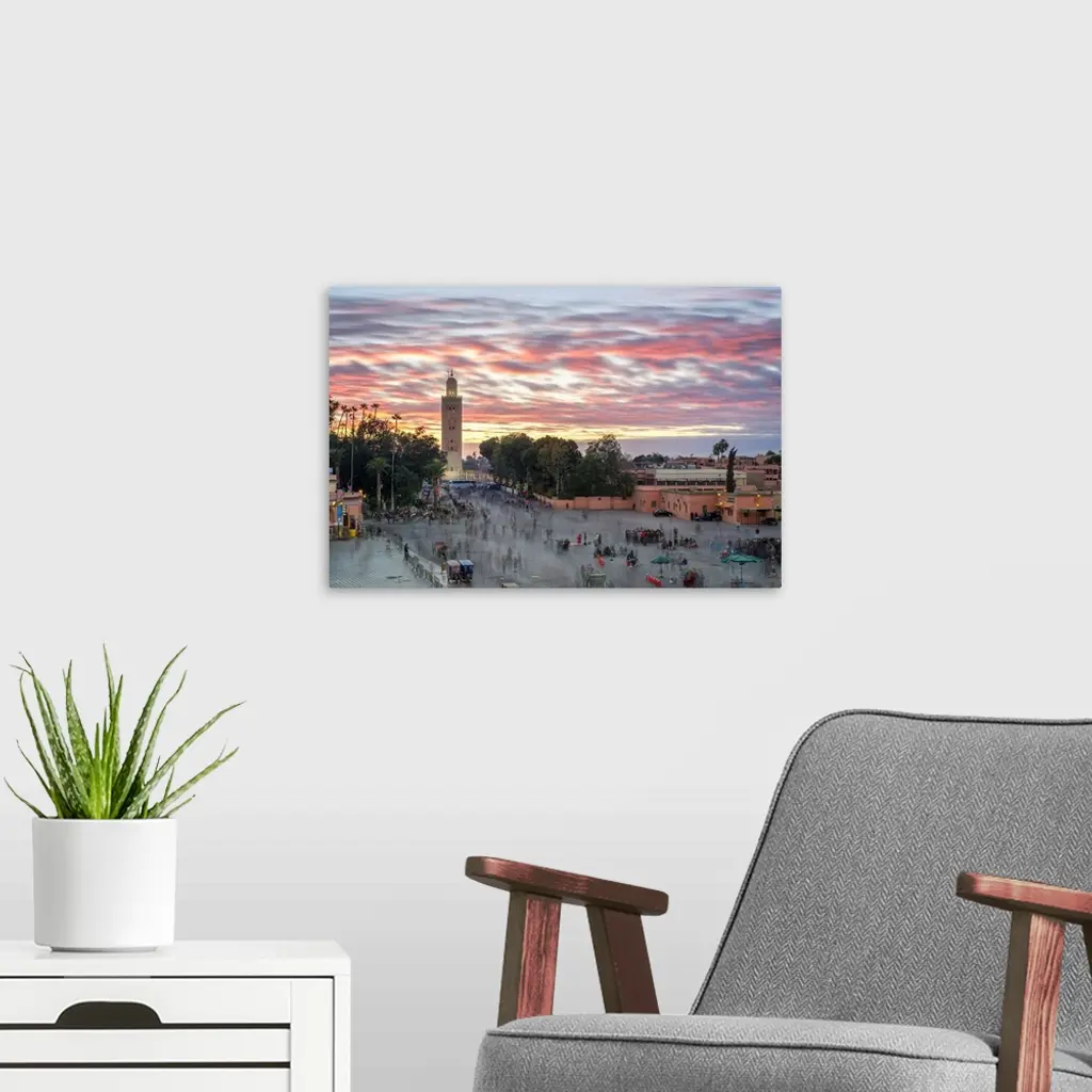 Minaret Of Koutoubia Mosque And Jmaa El-Fna Square At Sunset