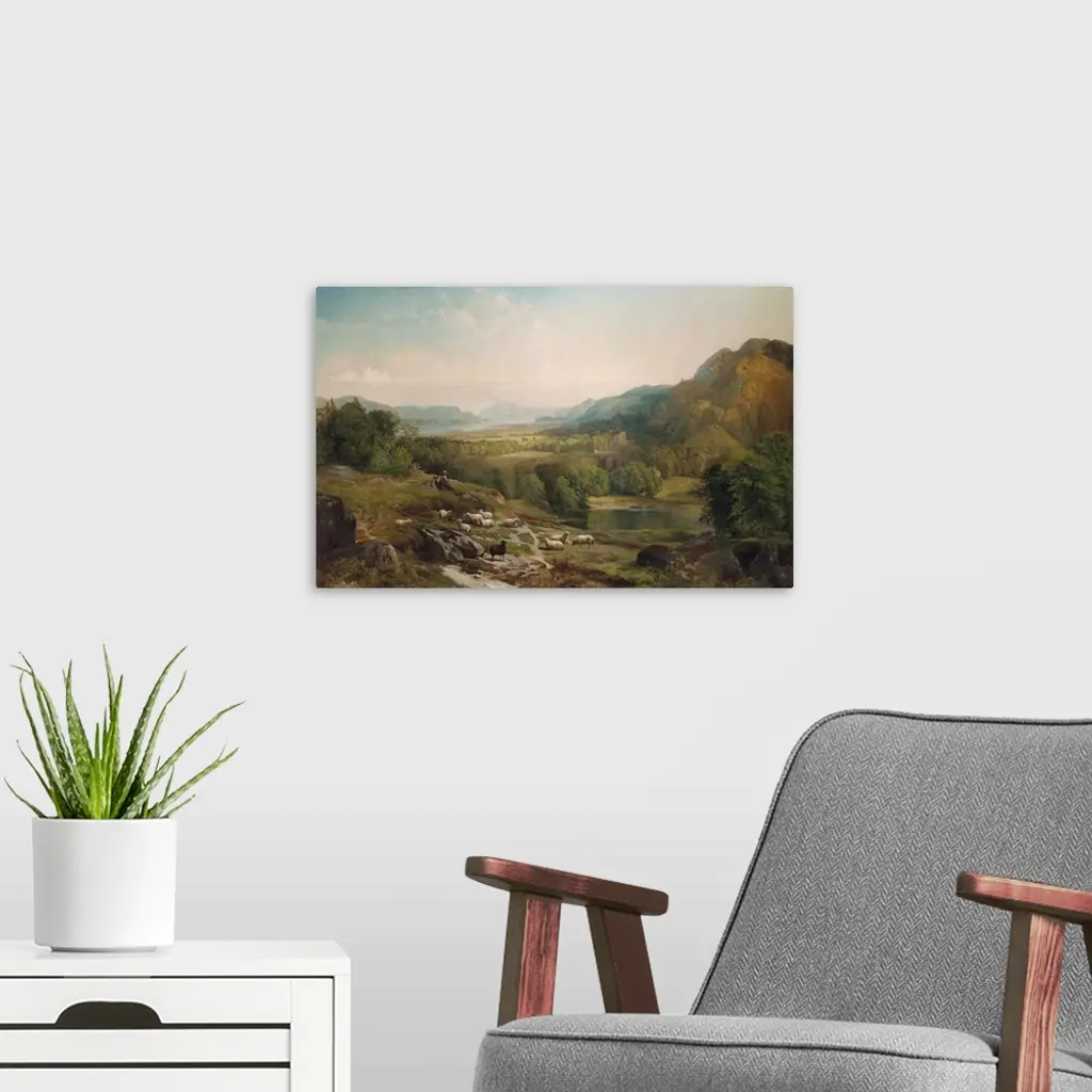CH377860 Minding the Flock, c.1867 (oil on canvas) by Moran, Thomas (1837-1926); Private Collection; Photo .... Christie's Images; American, out of copyright