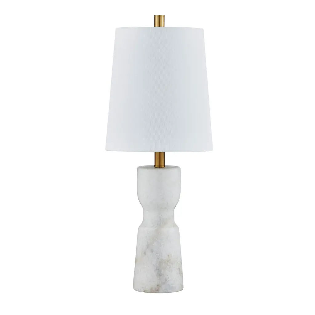 Mindy: small yet mighty, she reigns supreme in contemporary style and luxury. Crafted with a marble base, adorned with gold accents, and crowned with a white linen shade, Mindy exudes an aura of sophistication and elegance. Standing at 20 inches high, she is the perfect addition to any space in your home, effortlessly updating and revitalizing any corner with her presence. Illuminate your surroundings with Mindy and elevate your decor to new heights of chic refinement.FeaturesDimensions:Table LampRequirementsForty West proudly represents a commitment to quality, affordability, service, and style. Based in Jackson, TN, our expansive warehouses emphasize our unwavering dedication to growth and excellence. Specializing in lamps, lighting, upholstery, and case goods, our family-owned business prioritizes crafting high-quality, timeless pieces from the initial design stages to delivery. Meticulous quality control teams ensure premium products without the premium price. With showrooms in Atlanta, Dallas, High Point, and Las Vegas, Forty West invites you to discover our curated selection today.