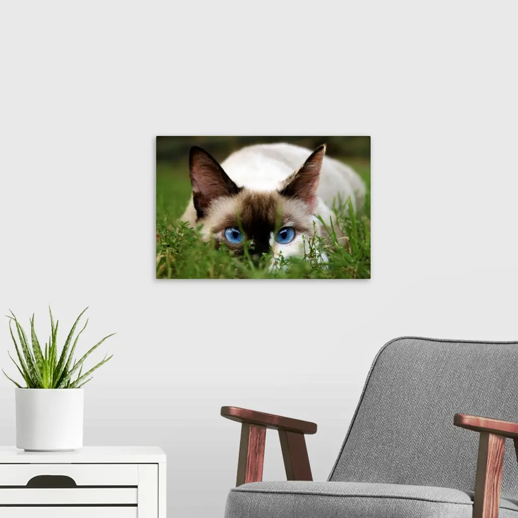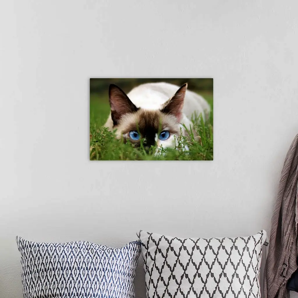 A cute cat hides in the grass.