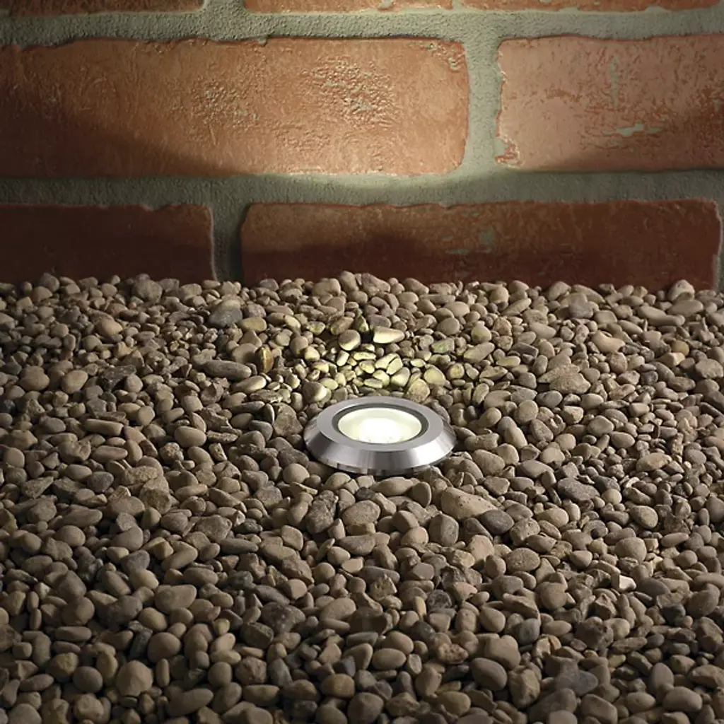 Versatile and modern-looking. The Mini In-Ground LED Landscape Light from Kichler is the perfect light for whatever your needs are, bringing high-quality and efficient illumination. You can switch the beam between three different optics—20-, 40-, and 75-degrees—so you can put the beam wherever you want or need it. It installs in a variety of applications easily because of its removable spring clip and compression sleeve. It’s resistant to water and dust damage thanks to its Stainless Steel construction.