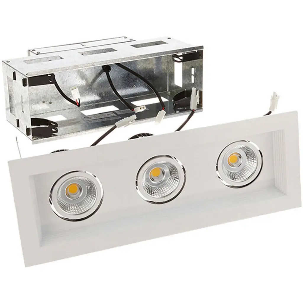 Mini Multiple LED Three Light Remodel Housing with Trim and Light Engine 3000K Narrow Beam in Black