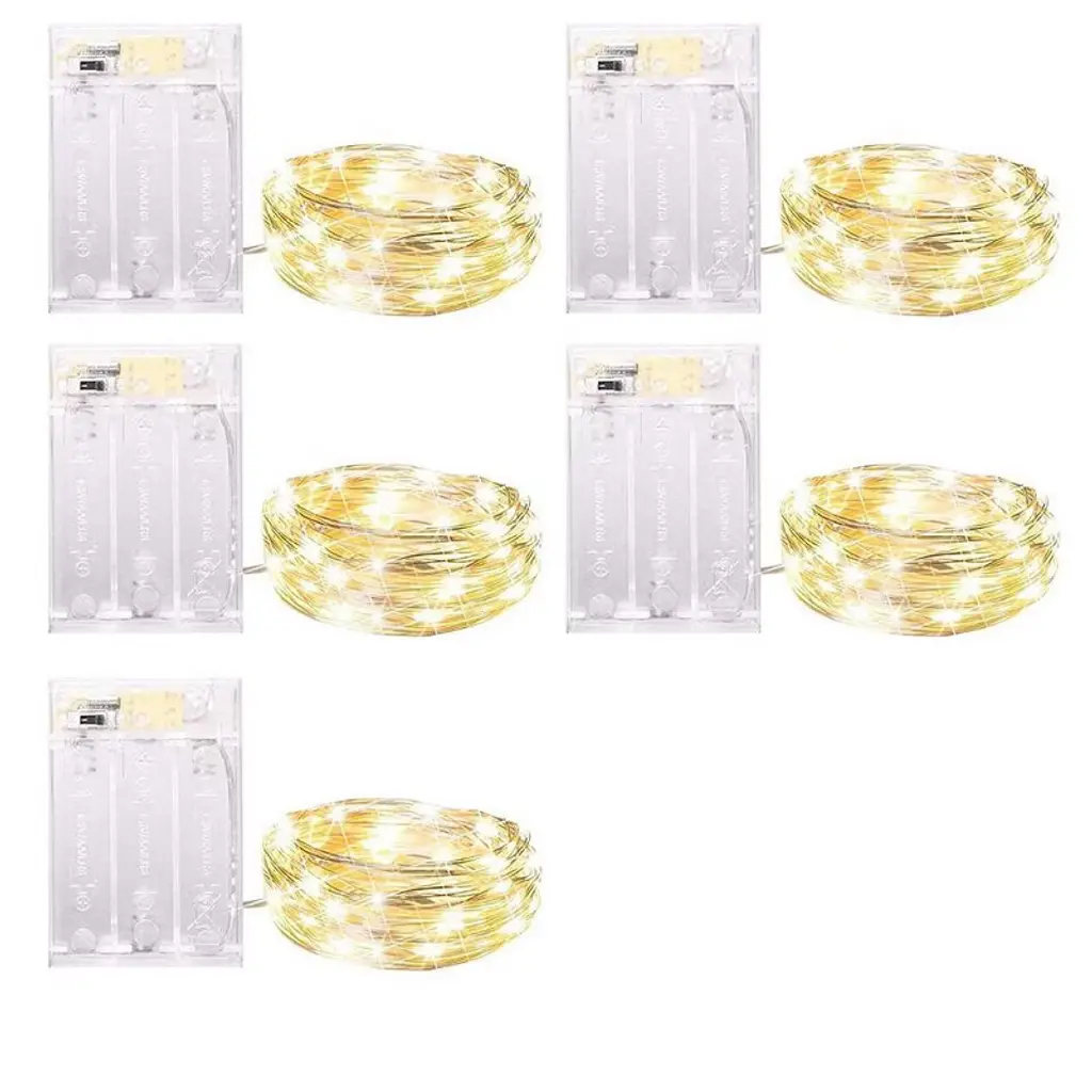 Illuminate your home decor with this set of Mini LED String Light strands. Featuring six total pieces, this set includes a timer function as well as 40 mini LED lights per strand. Add this accent decor piece to your LED candle display, faux floral arrangements, and other tabletop decor. Requires 3 AA batteries (not included).