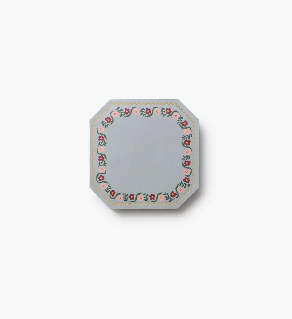 Jot down reminders or leave a sweet note with this set of three floral-bordered notepads, with metallic gold details and 50 tear-off sheets each.