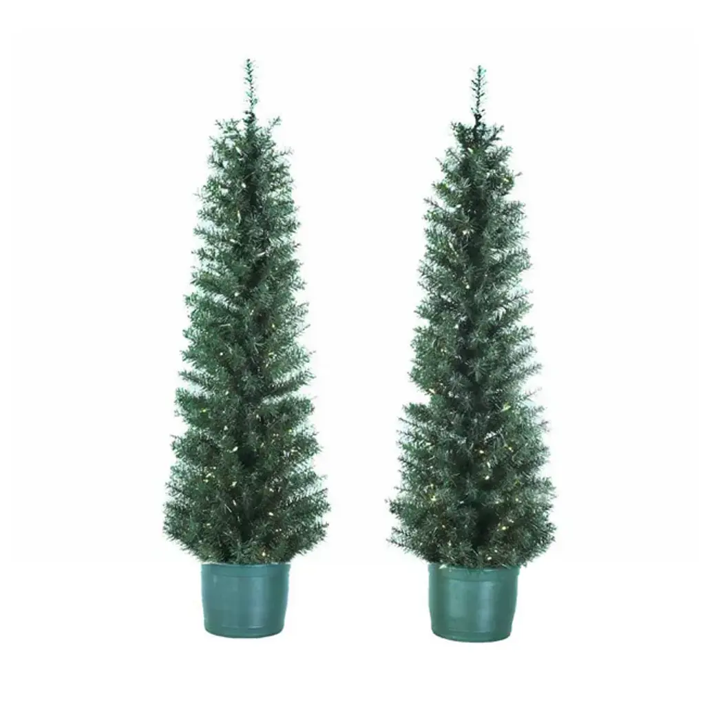 Ring in the holiday season with this beautiful set of Pine Tree with Burlap Base. Featuring warm white LED lights and measuring 2ft tall, this set would make a stunning floor display or could add hieght and interest to a tabletop display. The quality PVC flocked branches are sure to last for seasons to come. The burlap bag accent is the perfect finishing touch to give the set a rustic or country feel. Display the pieces together to make a statement, or display them alongside your other holiday decor to add interest.