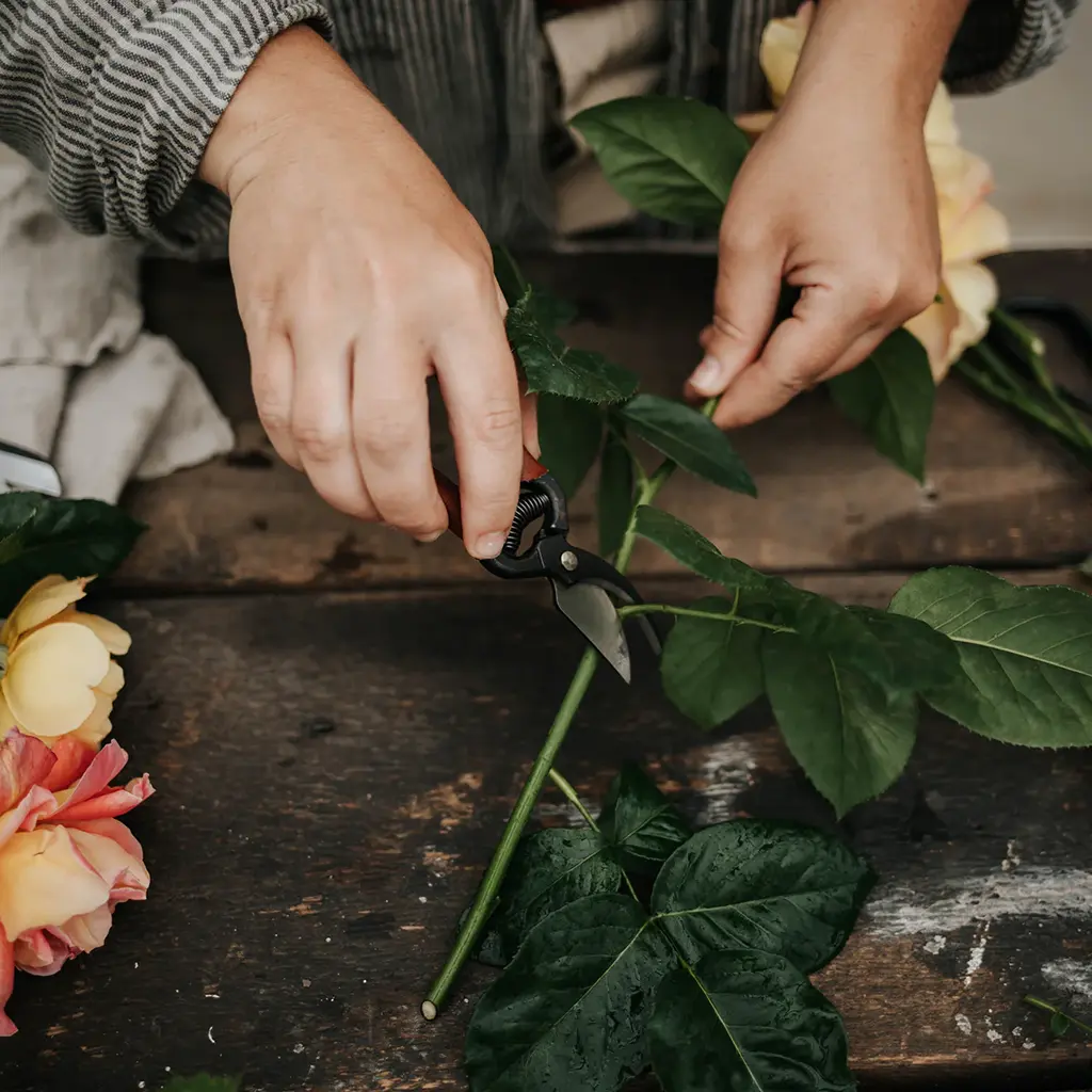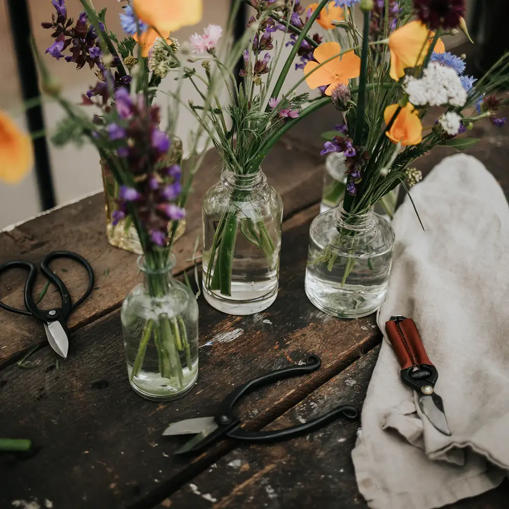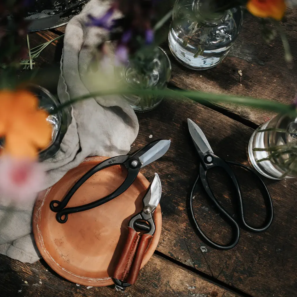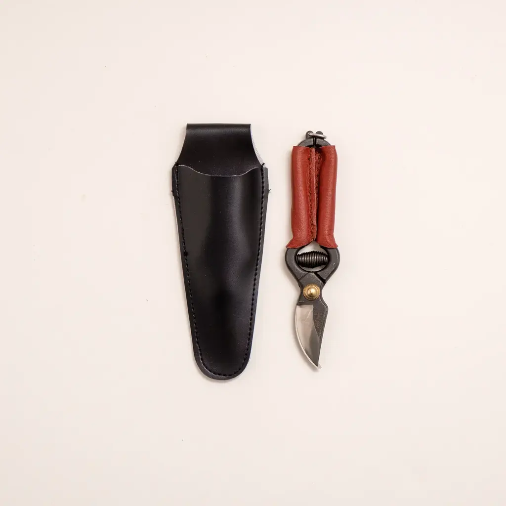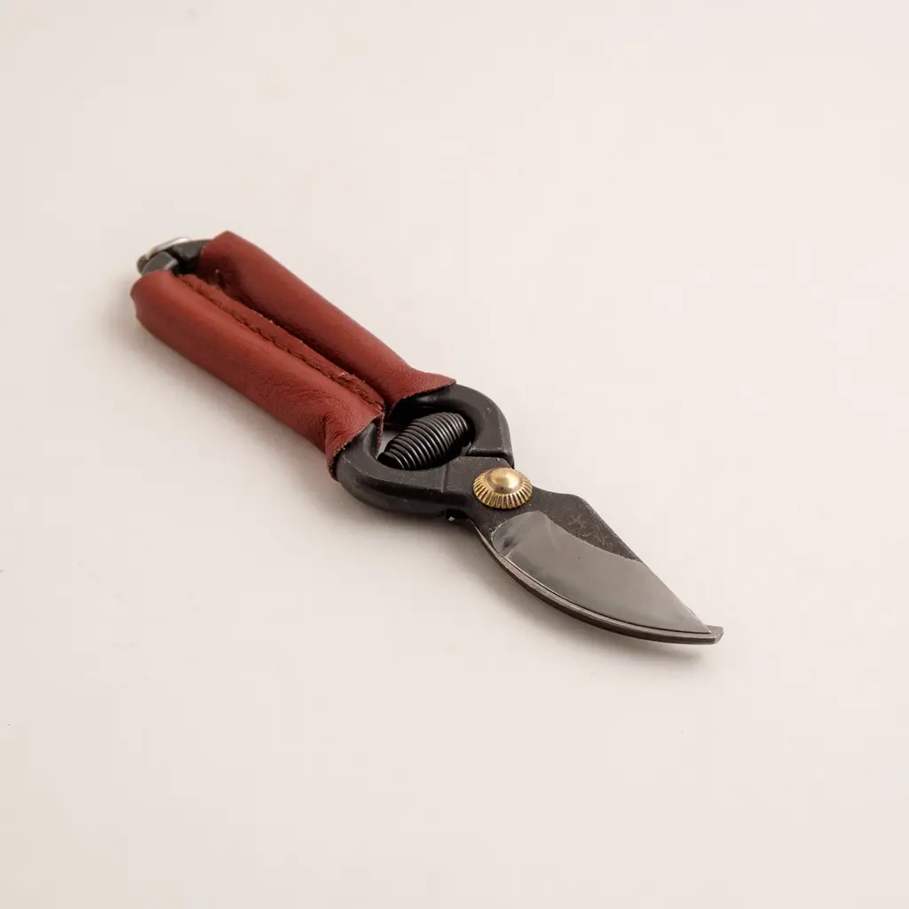 Looking for a reliable pair of compact pruners that can handle everything from flower arranging to quick snips in the greenhouse? Say hello to Niwaki's mini secateurs. Hand-crafted from high-quality carbon steel using traditional methods in Japan, these lightweight pruners are built to last for years when properly cared for. The leather leggings add natural character and grip that will only improve with age. A thoughtful gift for the gardener in your life. With a maximum cut diameter of 5mm (3/16 in), they're perfect for "back pocket" jobs when larger pruners aren't needed. Although Japanese carbon steel is durable, it can chip if mishandled, so use with care.