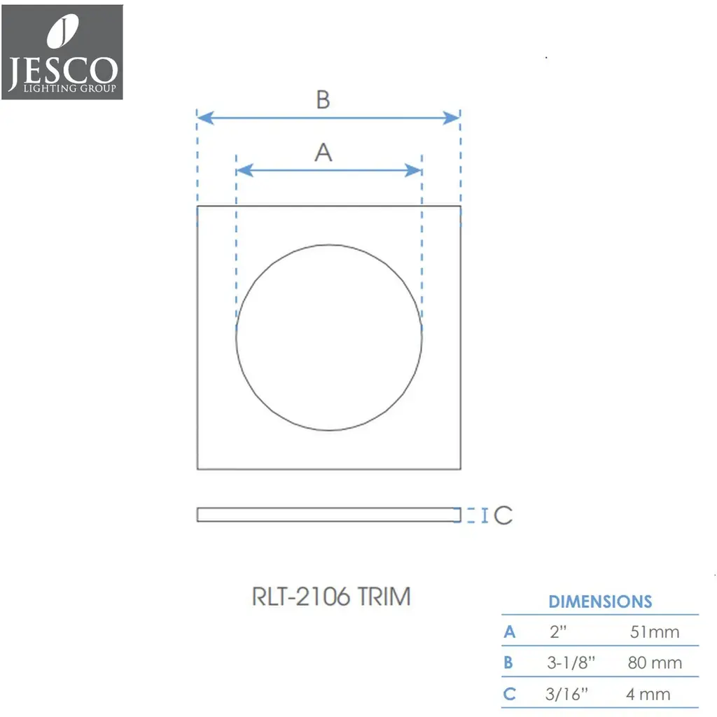Miniature White Downlight Trim, Square