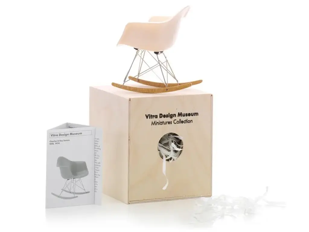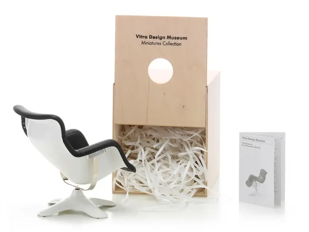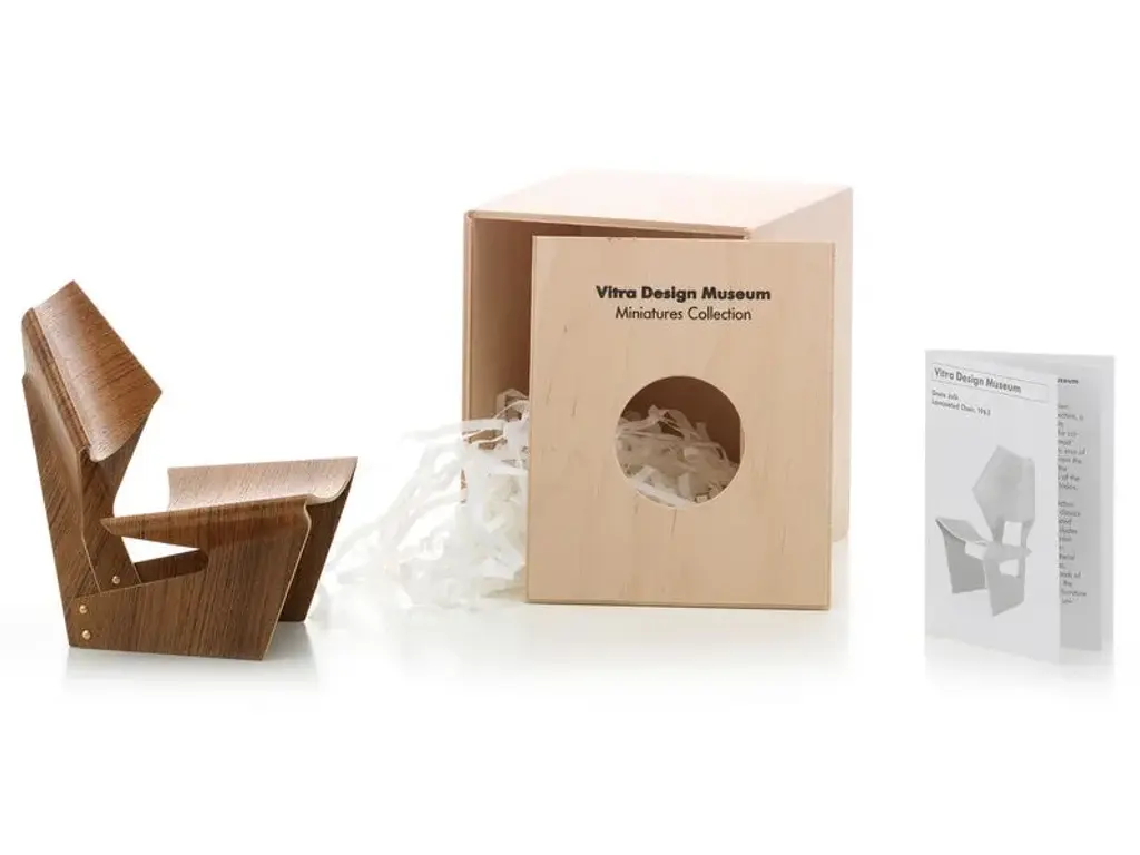 For over two decades, the Vitra Design Museum has been making miniature replicas of milestones in furniture design from its collection. The Miniatures Collection encapsulates the entire history of industrial furniture design – moving from Historicism and Art Nouveau to the New Objectivity of Bauhaus and Radical Design, and from Postmodernism all the way up to the present day. Exactly one sixth of the size of the historical originals, the chairs are all true to scale and precisely recreate the smallest details of construction, material and colour. The high standard of authenticity even extends to the natural grain of the wood, the reproduction of screws and the elaborate handicraft techniques involved. This has made the miniatures into popular collector‘s items as well as ideal illustrative material for universities, design schools and architects.
