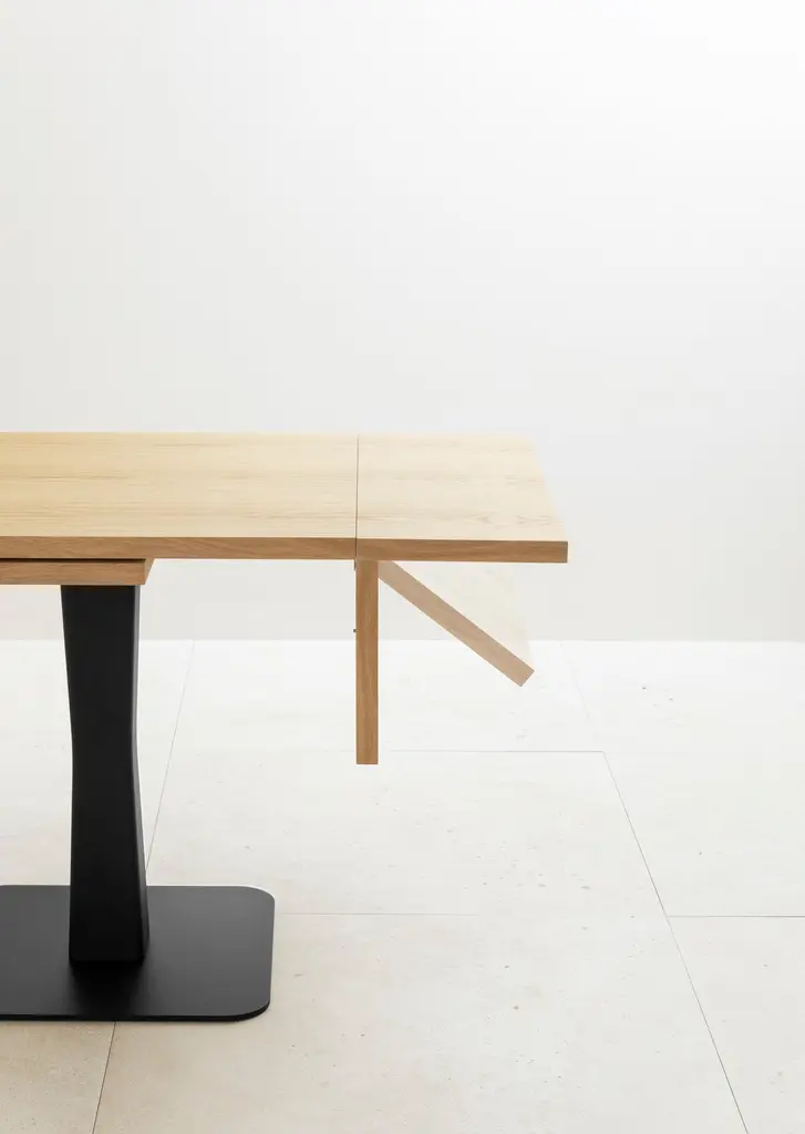 Gualtiero is designed for smaller, more intimate spaces, from bistros to small apartments, finding the spot for an iconic, practical table.Extendible table with metal plate varnished black or white. The frame is in oak, canaletto walnut or lacquered. Top in veneer of canaletto walnut, flamed oak, heat-treated oak, black ash, vintage oak, Fenix with wooden edges or lacqueredAdditional Information:Material: Metal plate, oak, fenixTop Finishing• Black Fenix• Efeso Gray Fenix• Fenix London Gray• White Malè Fenix• Lacquered Antracite• Lacquered Bianco• Lacquered Bisanzio• Lacquered Bloody Mary• Lacquered Burro• Lacquered Creta• Lacquered Grigio Seta• Lacquered Mattone• Lacquered Nero• Lacquered Nuvola• Lacquered Pino• Lacquered Pompei• Lacquered Zucca• Black Ash• Canaletto Walnut• Flamed Oak• Heat-Treated Oak• Vintage OakStructure Finishing• Lacquered (just like the top)• Zinc-coatedDetails Finishing• Lacquered (just like the top)• Canaletto Walnut• Flamed OakDimensions: • Small: 80-110-140 x 80 x 78h cm• Medium: 100-130-160 x 80 x 78h cm• Large: 120-150-180 x 80 x 78h cmPrice refers to the small version.