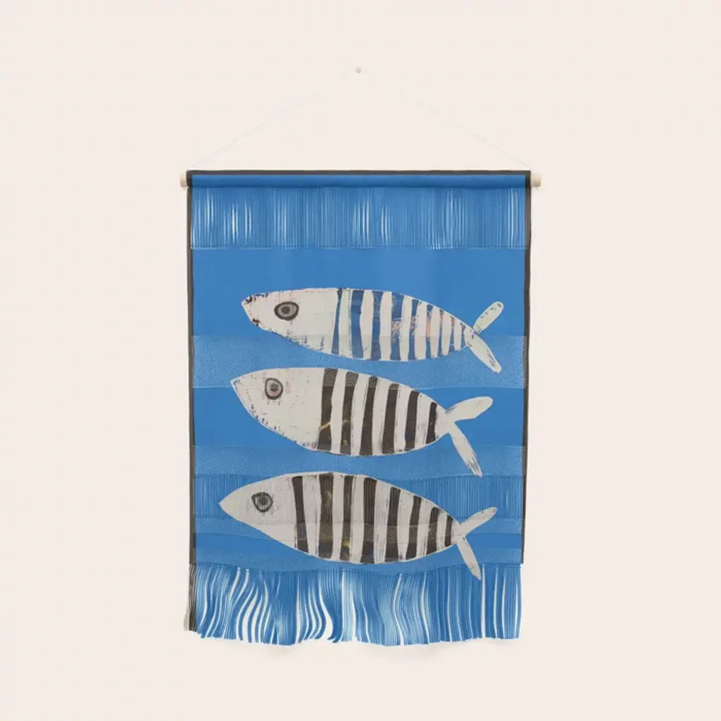 Minimal Fish On Blue Wall Hanging