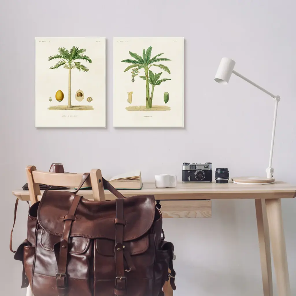 Minimal Green Palm Tree Coconuts Diagram Illustration, 2Pc, Each 13 X 19